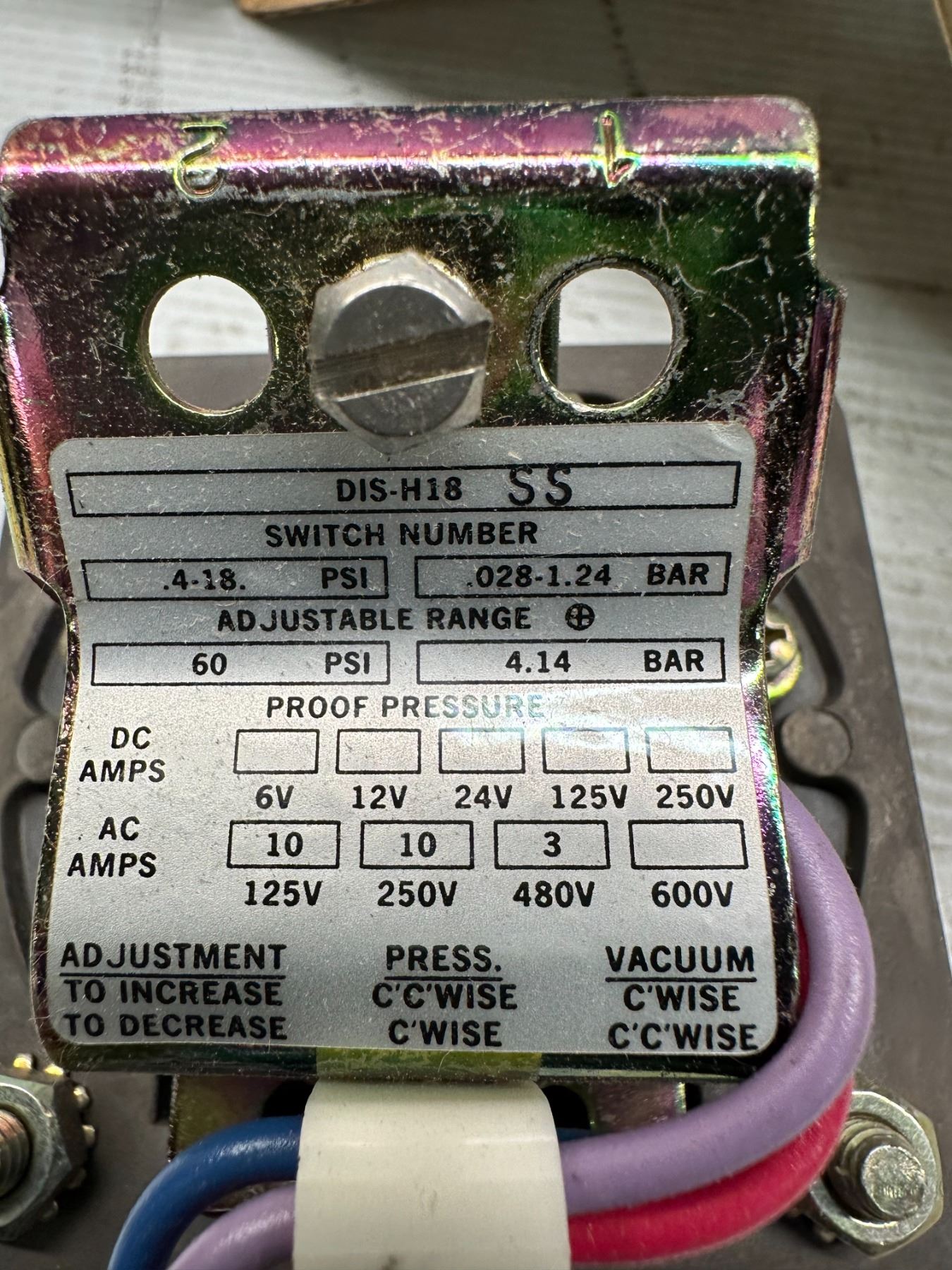 Barksdale #DIS-H18SS Diaphragm Pressure Switch