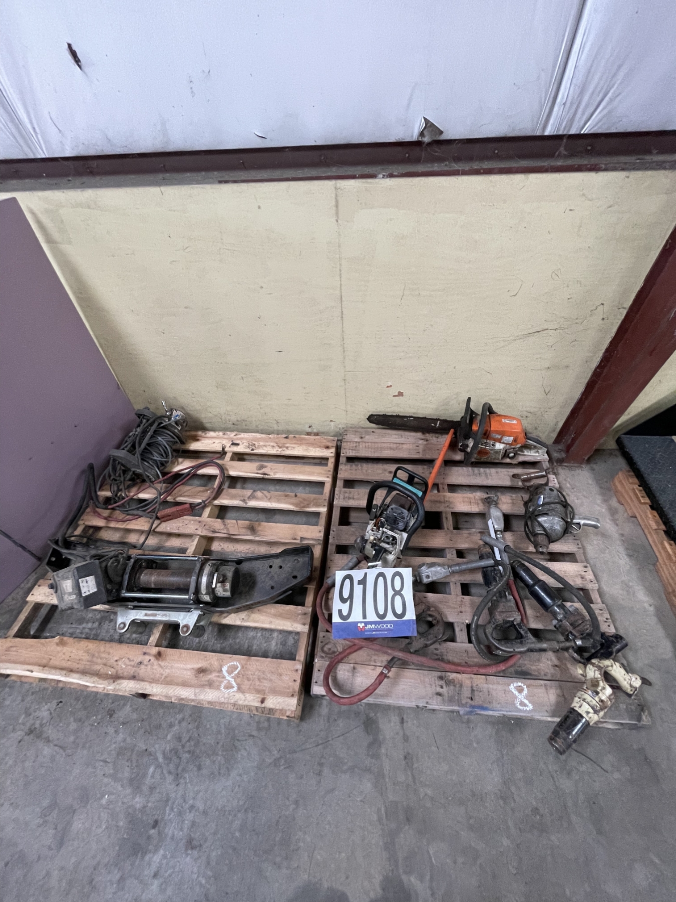 air compressor, drill motor, chipping hammer, lightbars, winch, floor jacks, chain hoists, grill guard, Selling Offsite: Located in Mobile, AL
