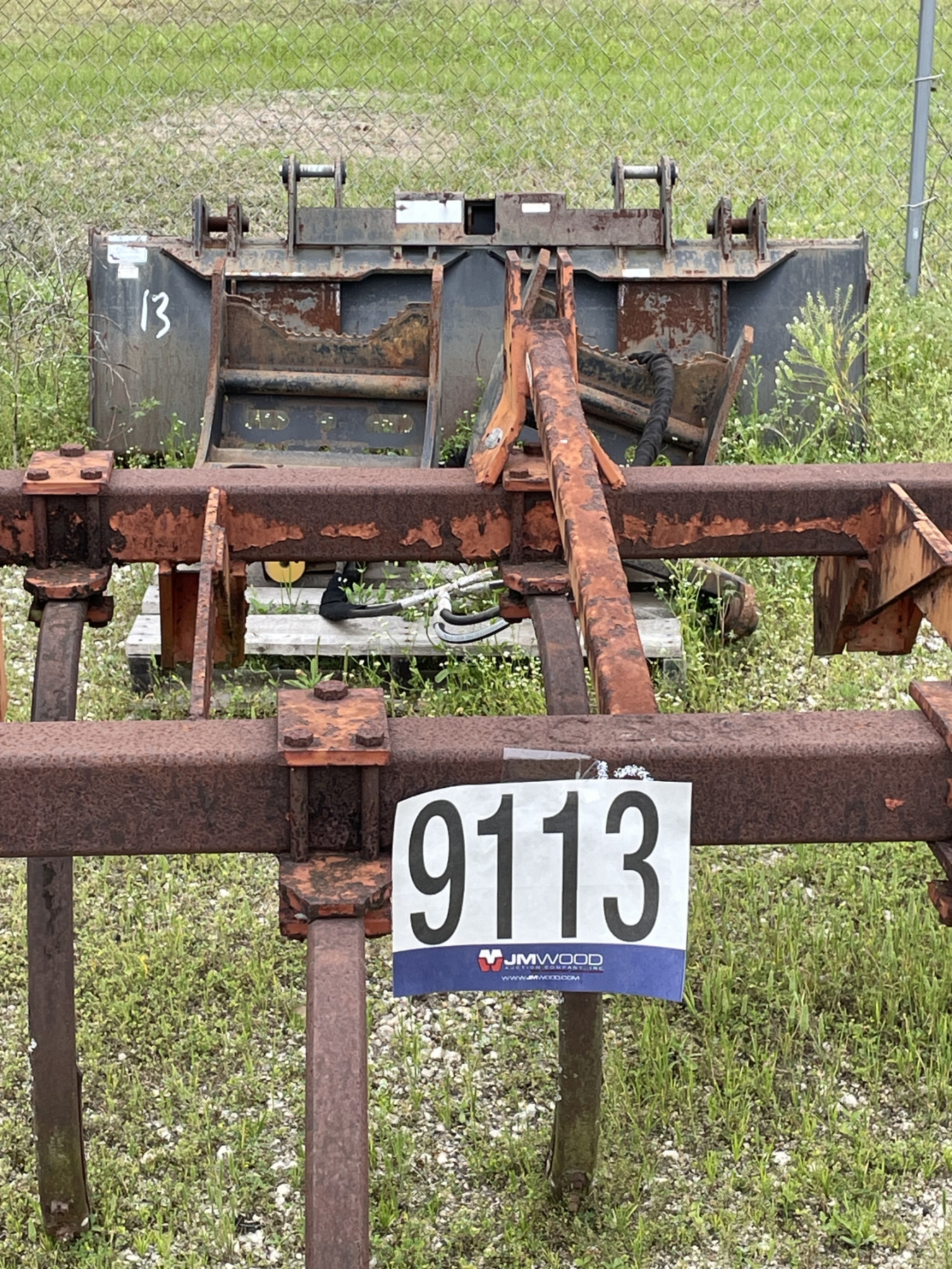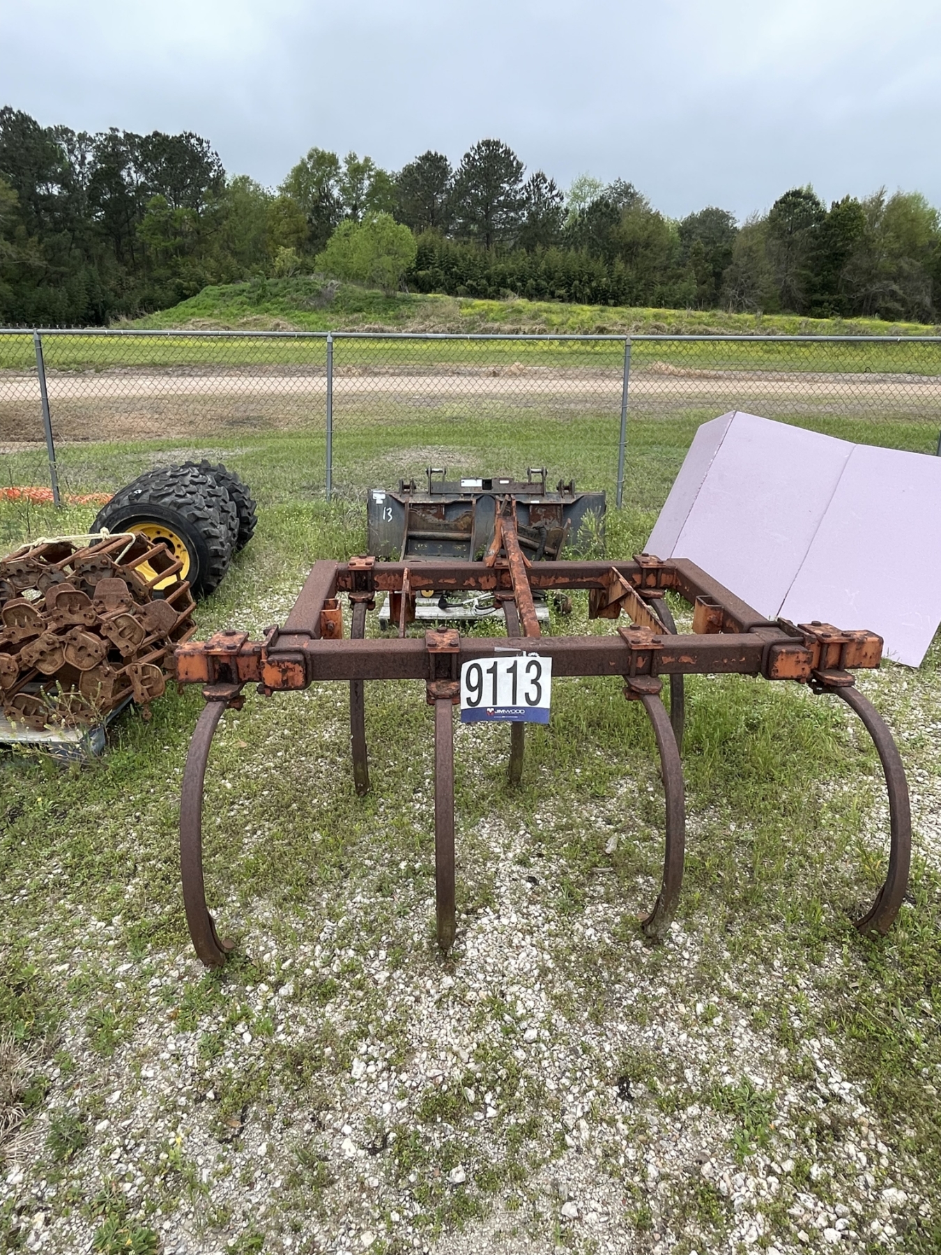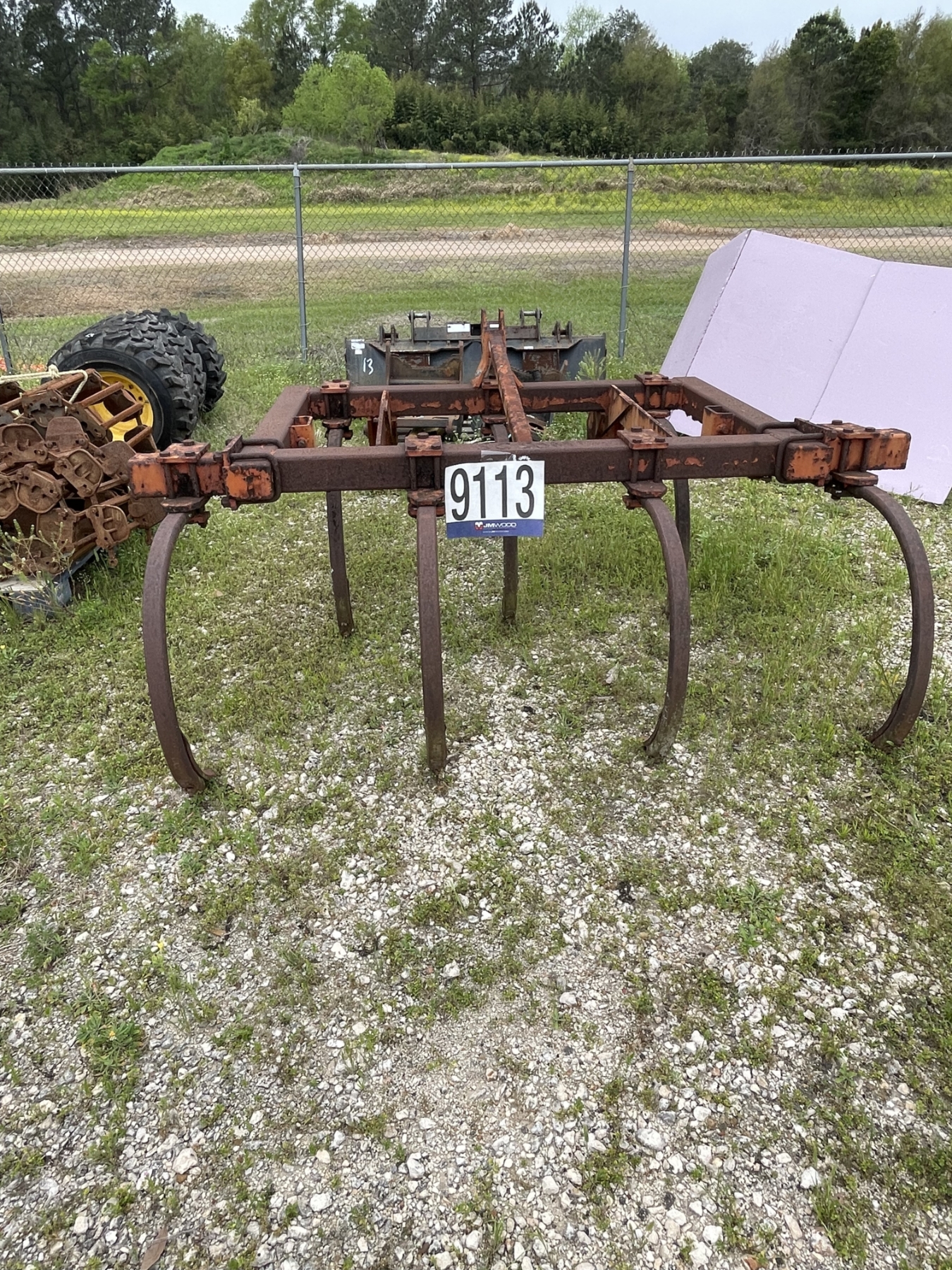 Lot 9113 SKID STEER GRAPPLE BUCKET, (4) 12-16.5 TIRES W/ TRACKS, & CHISEL Plow