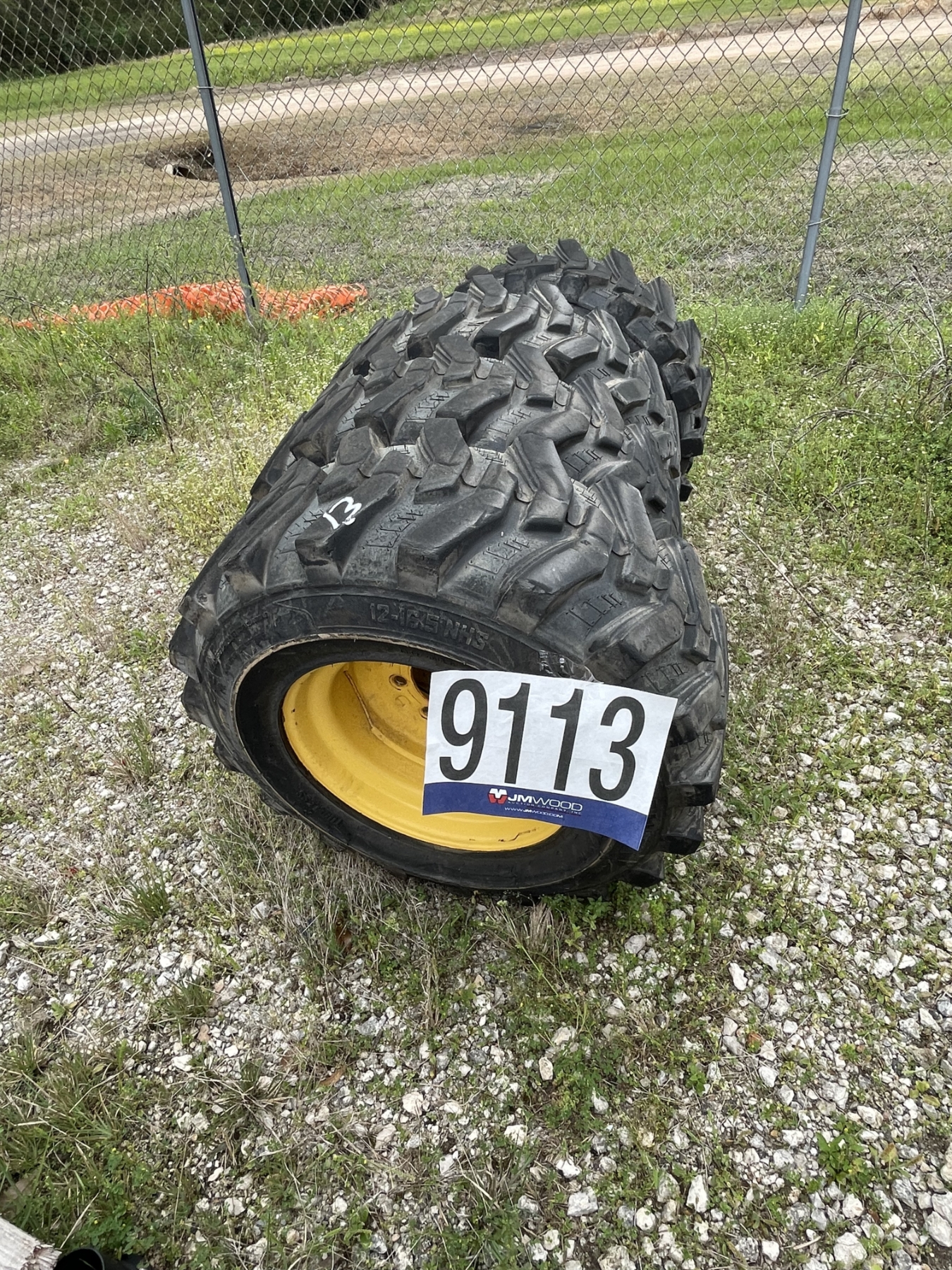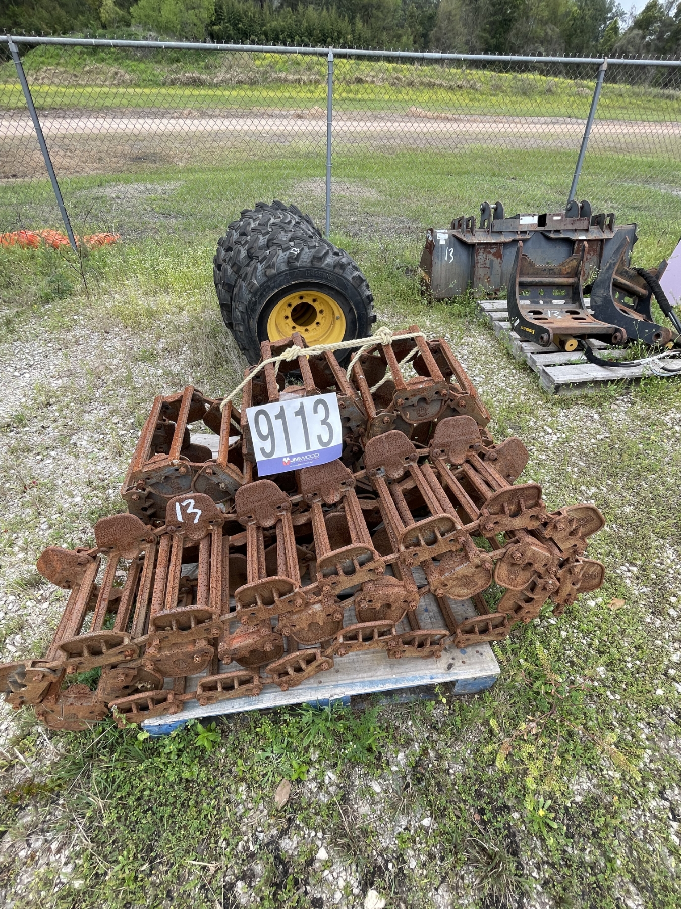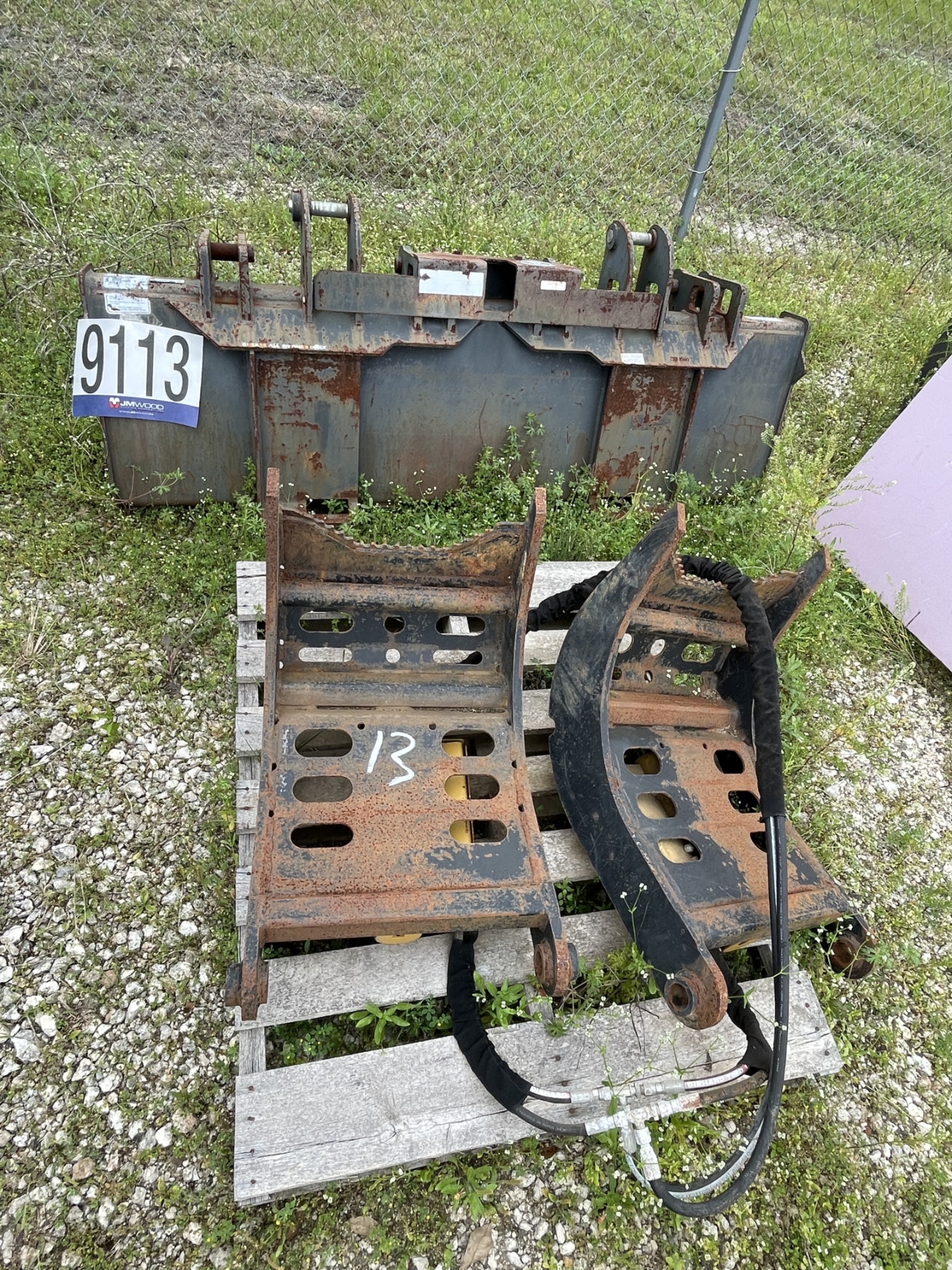 Lot 9113 SKID STEER GRAPPLE BUCKET, (4) 12-16.5 TIRES W/ TRACKS, & CHISEL Plow