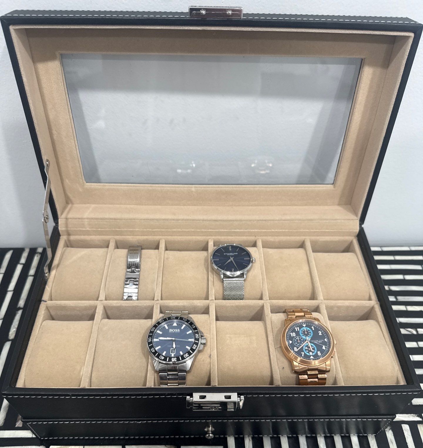 Lot 5 Luxury Men's Time Piece Collection w/ PU Leather Box - HUGO BOSS Micheal Korrs & STURLING