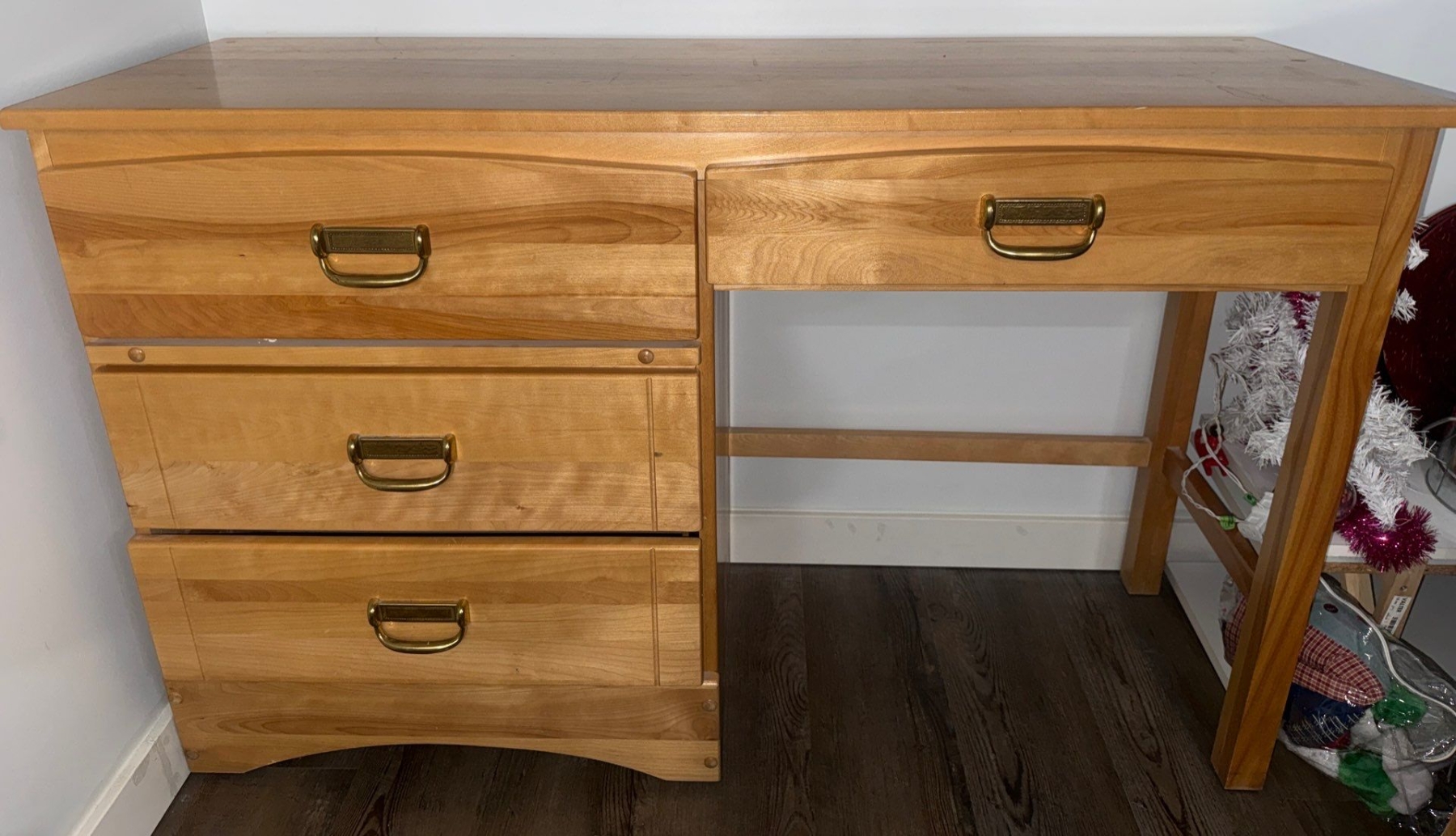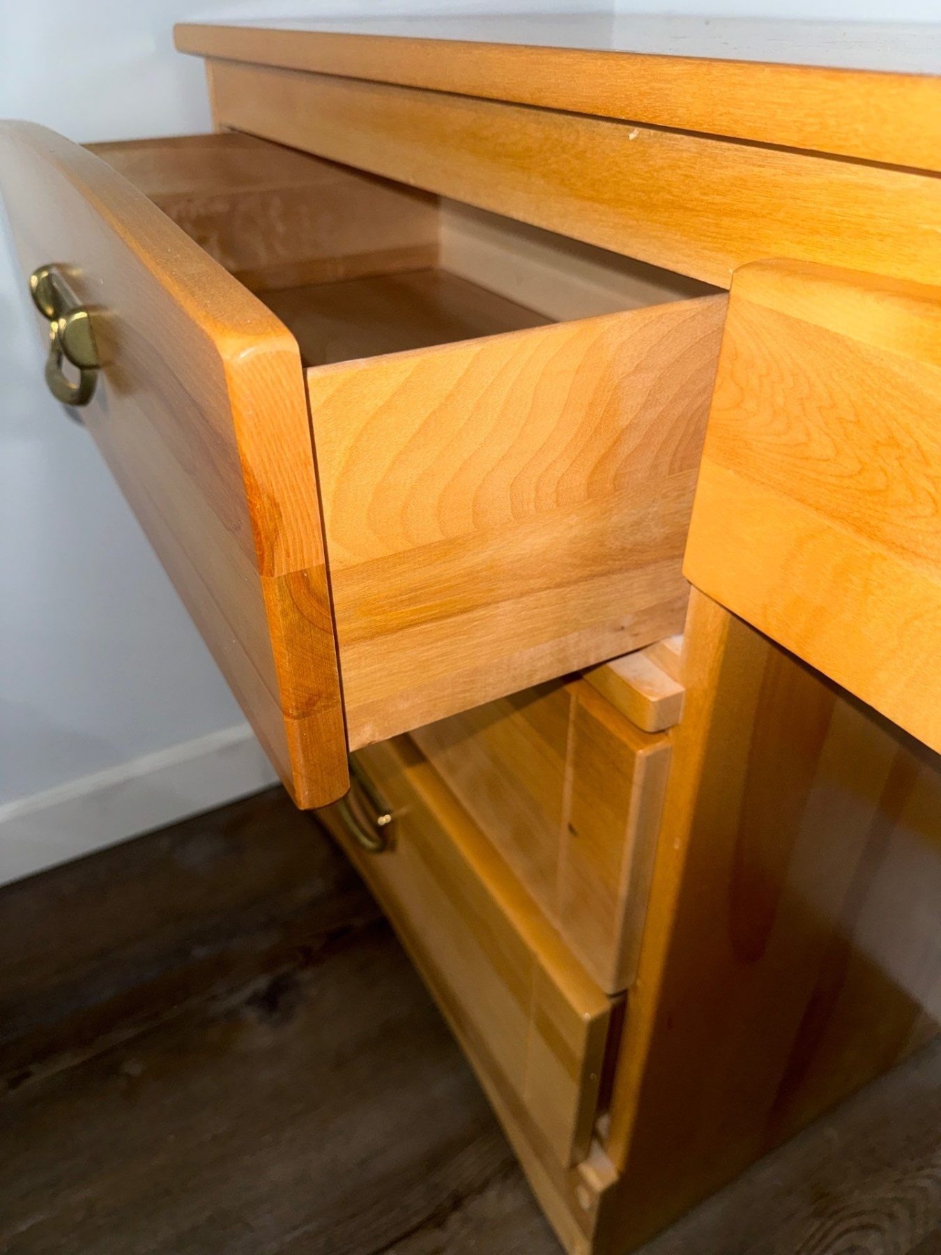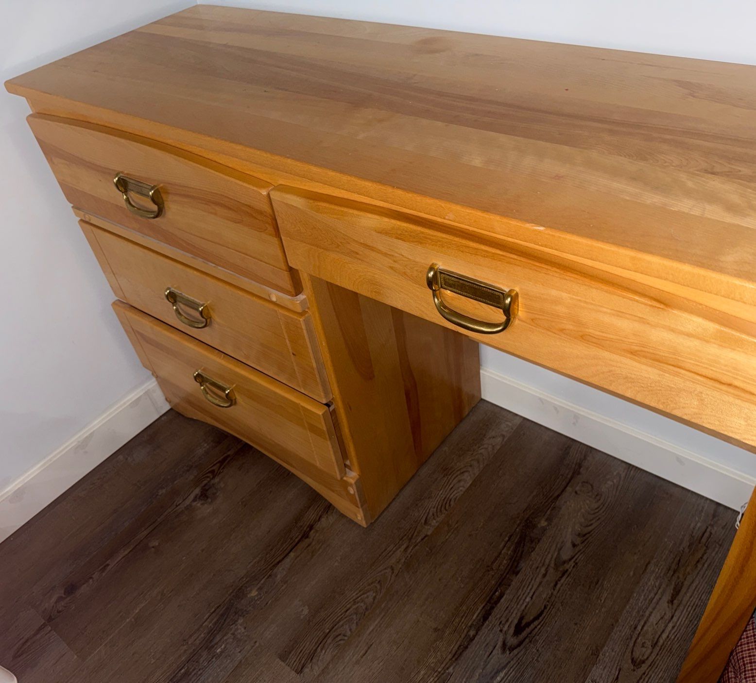 Lot 14 Vintage Scandinavian Single Pedestal Pine Desk 43x21x37"tall