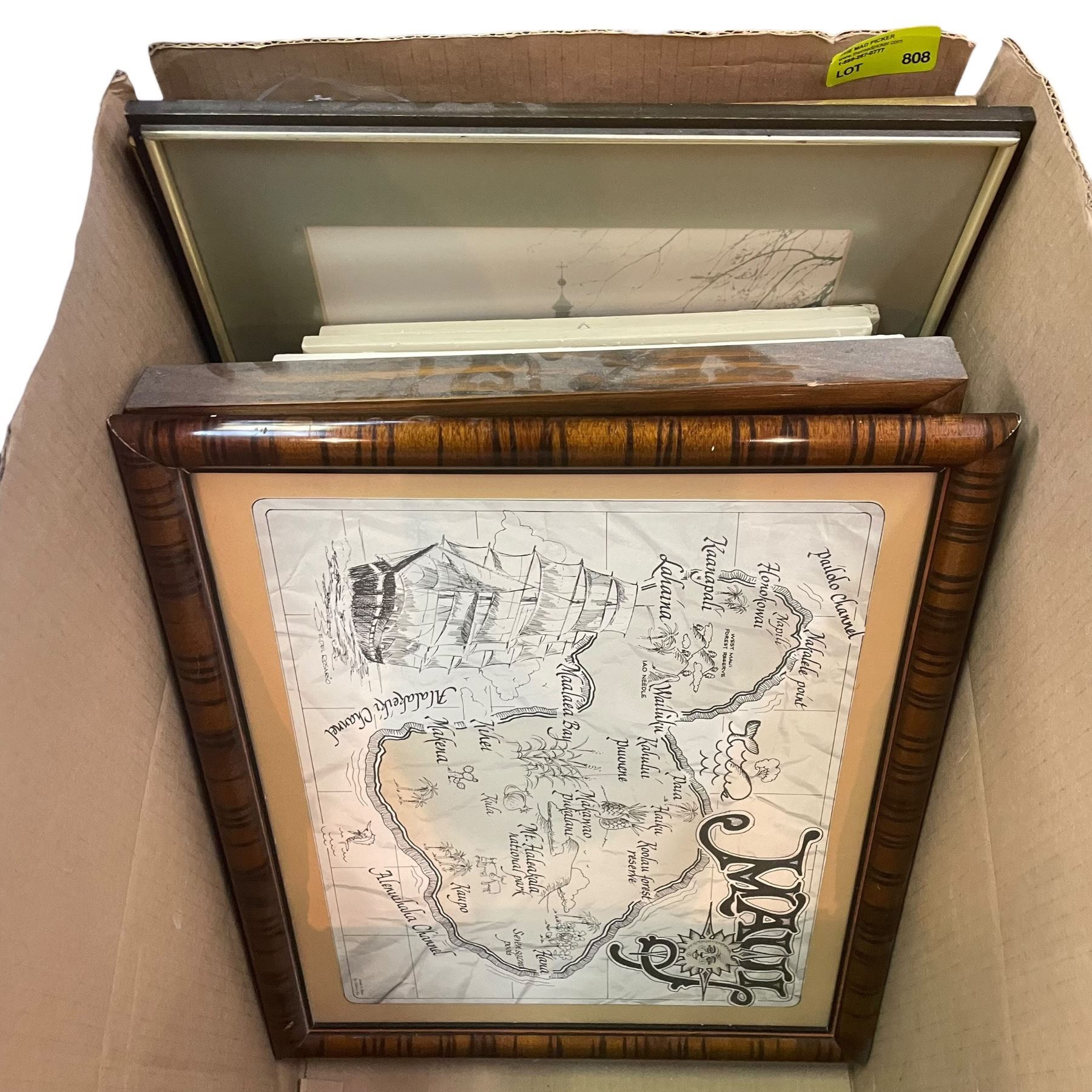 Lot 808 Box of Vintage Pictures in Frames and Household Goods