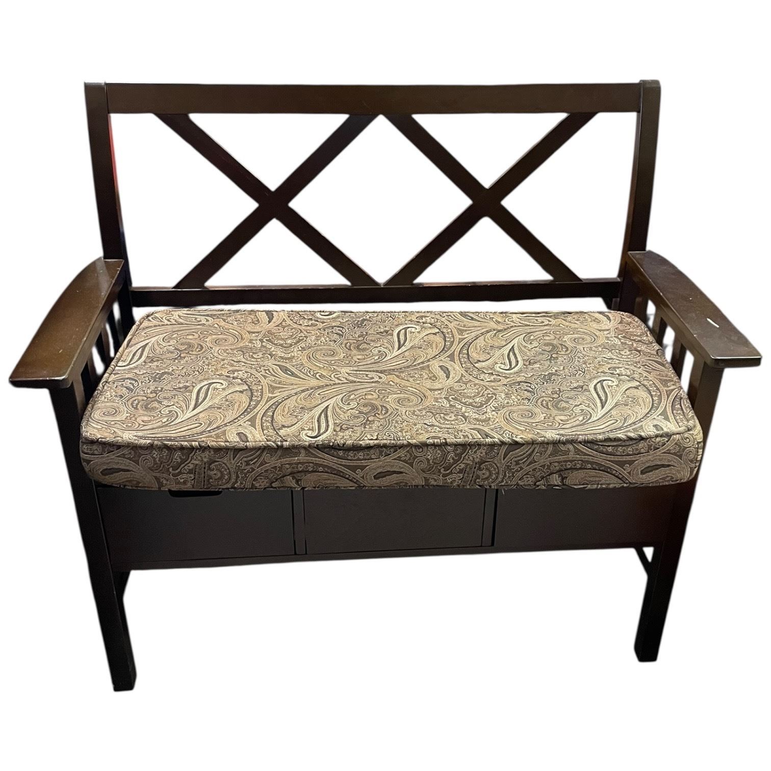 Lot 820 Wood Hall Bench with 3 Storage Drawers and Upholstered Seat Pad (40" wide)