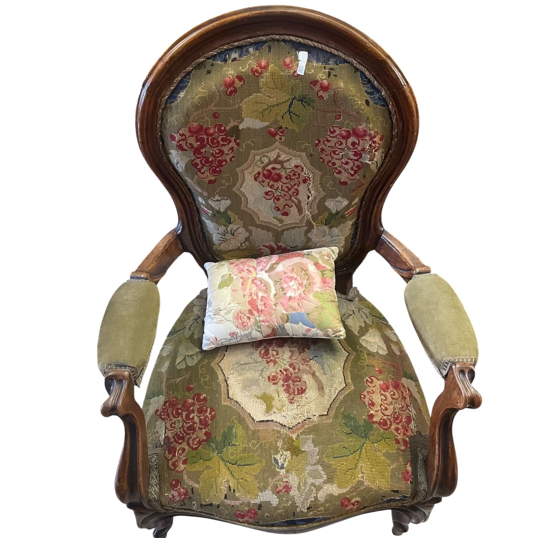 Victorian Solid Wood Arm Chair with Tapestry Upholstery