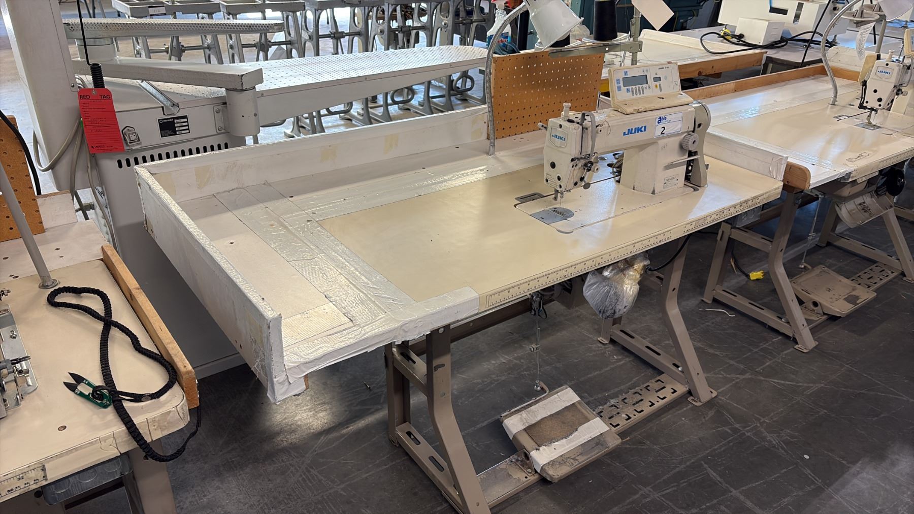 Lot 2 JUKI DLN-5410N-7 HIGH-SPEED, 1-NEEDLE, NEEDLE-FEED, LOCKSTITCH INDUSTRIAL SEWING STATION