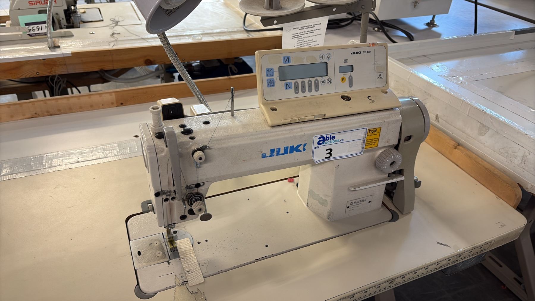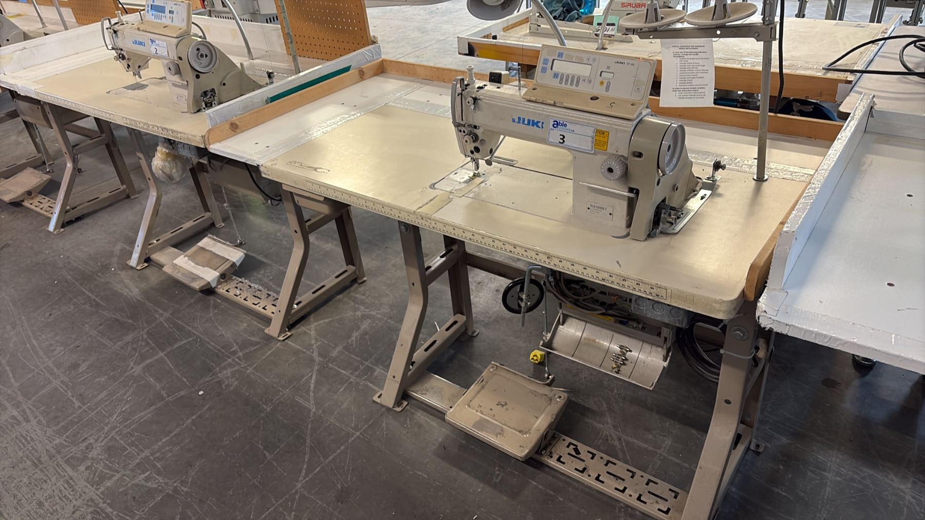 Lot 3 JUKI DLN-5410N-7 HIGH-SPEED, 1-NEEDLE, NEEDLE-FEED, LOCKSTITCH INDUSTRIAL SEWING STATION
