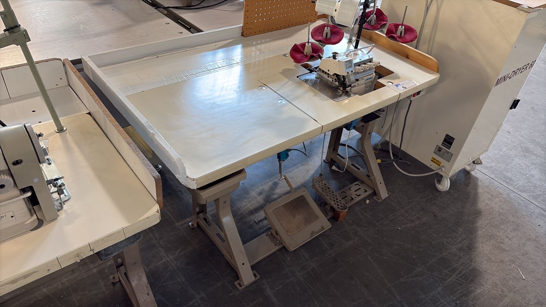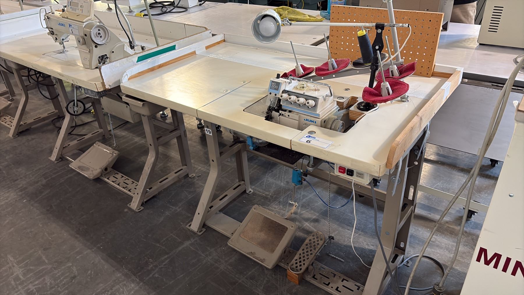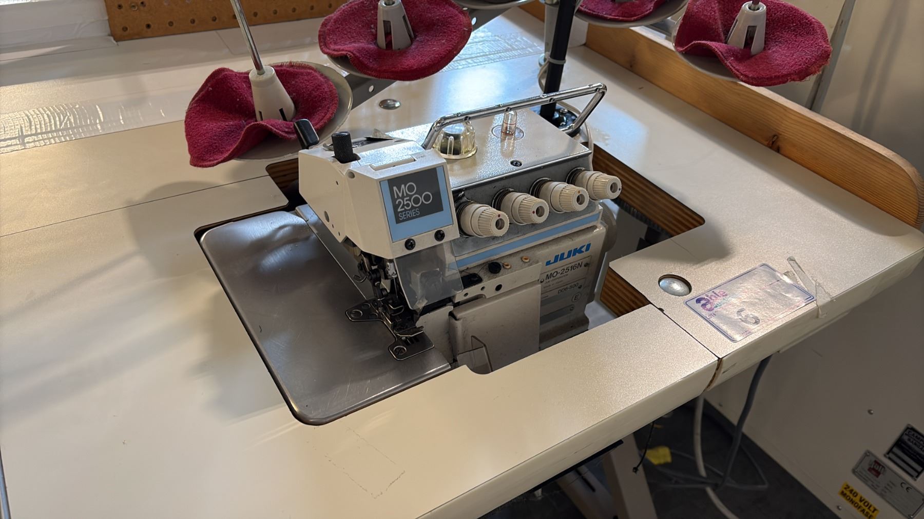 Lot 6 JUKI MO-2516N HIGH-SPEED, INDUSTRIAL 2-NEEDLE, 4-THREAD SAFETY STITCH OVERLOCK SEWING STATION