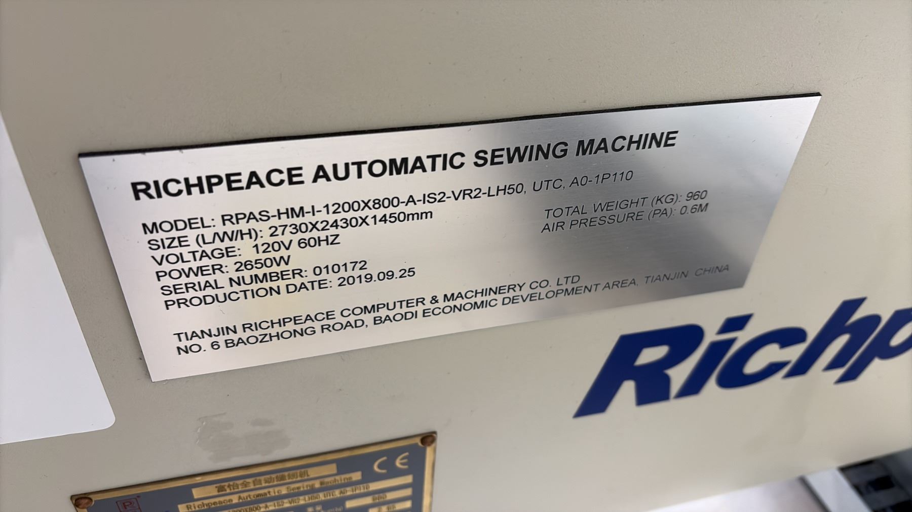 Lot 23 RICHPEACE RPAS-HM-I-1200X800-A-IS2-VR20LH50 AUTOMATIC SINGLE HEAD HEAVY MATERIAL SEWING STATION