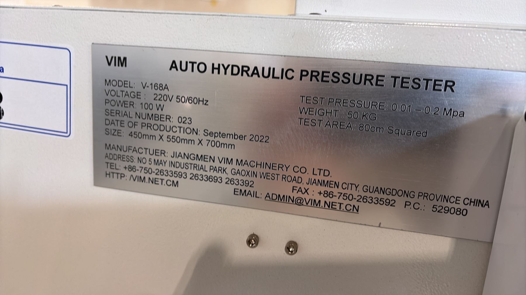 Lot 33 VIM V-168A TESTING WATER PRESS MACHINE