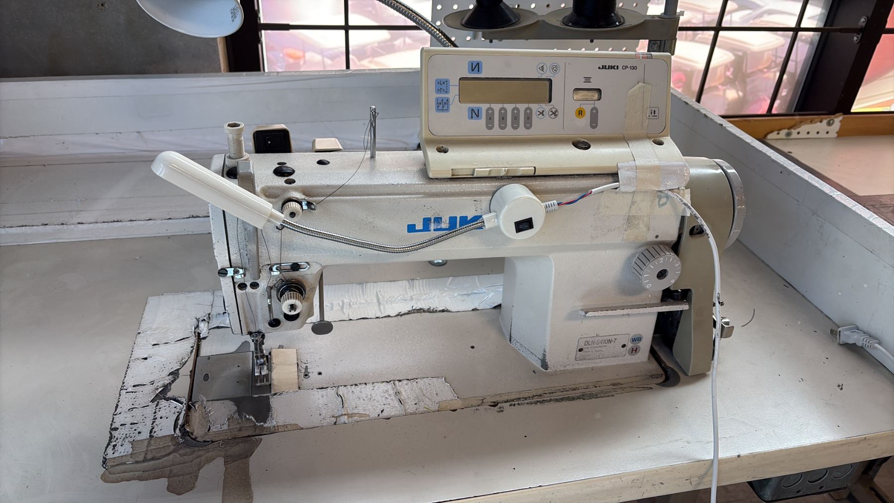 JUKI DLN-5410N-7 HIGH-SPEED, 1-NEEDLE, NEEDLE-FEED, LOCKSTITCH INDUSTRIAL SEWING STATION WITH CP-130 DIGITAL CONTROL PANEL