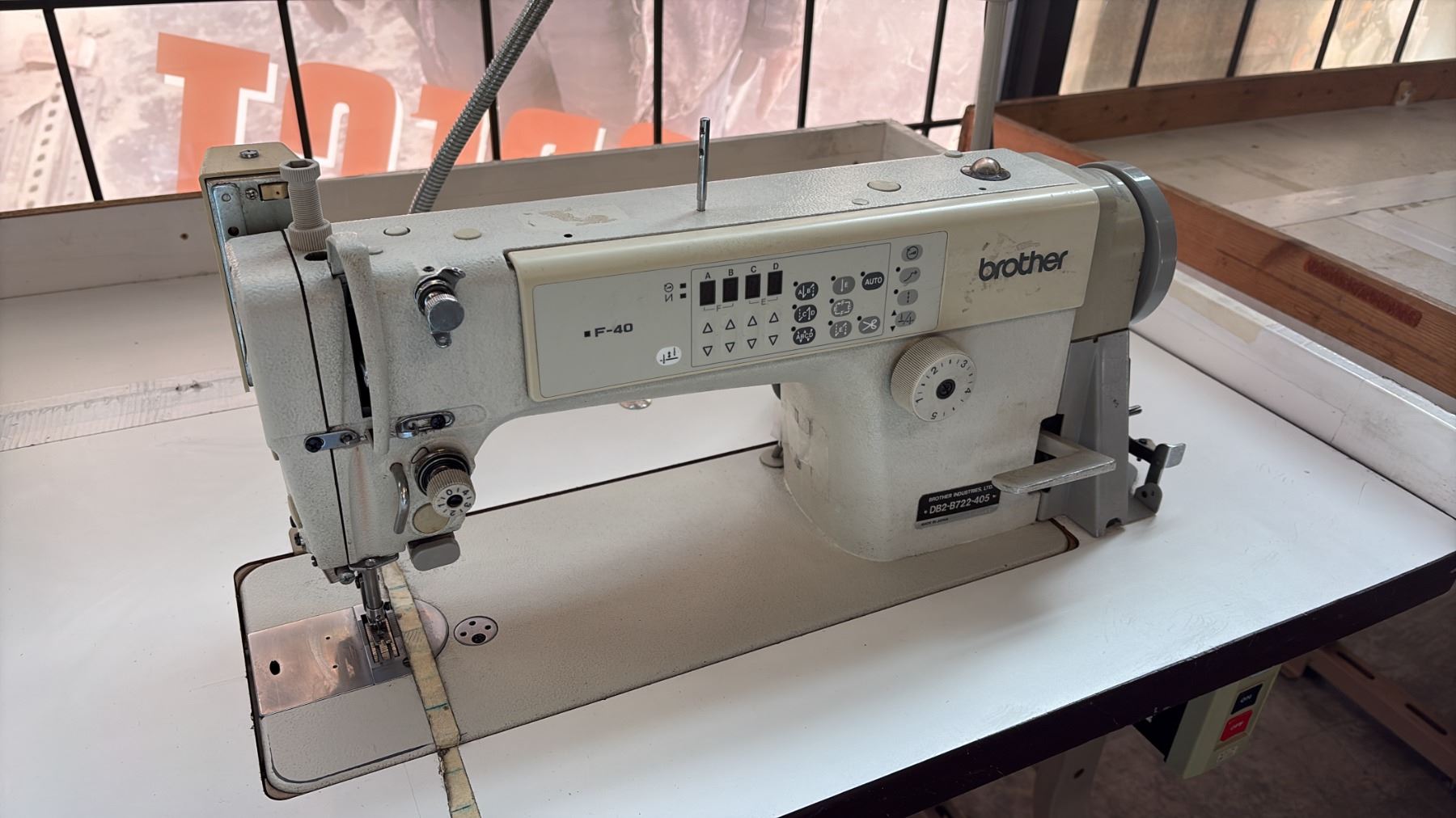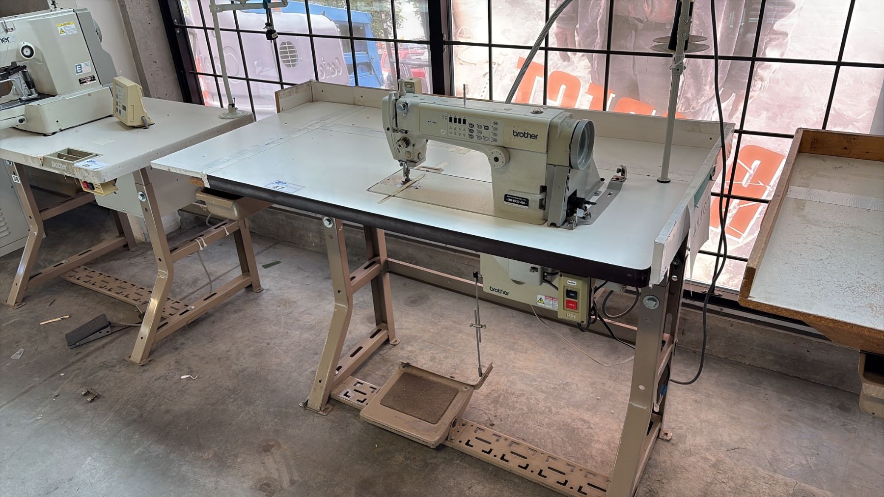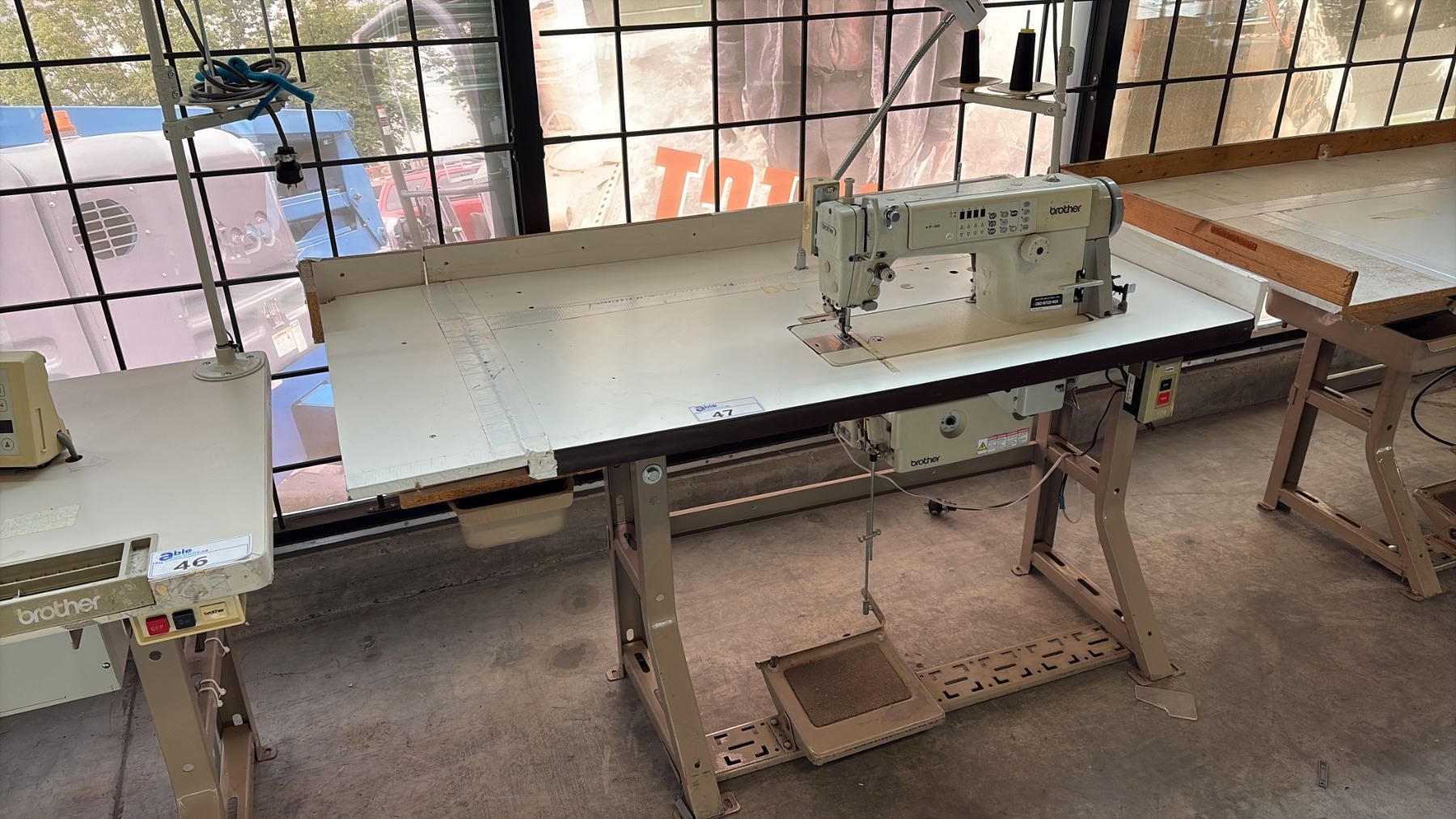 Lot 47 BROTHER DB2-B722-405 INDUSTRIAL, SINGLE-NEEDLE LOCKSTITCH SEWING STATION WITH NEEDLE FEED TRANSPORT