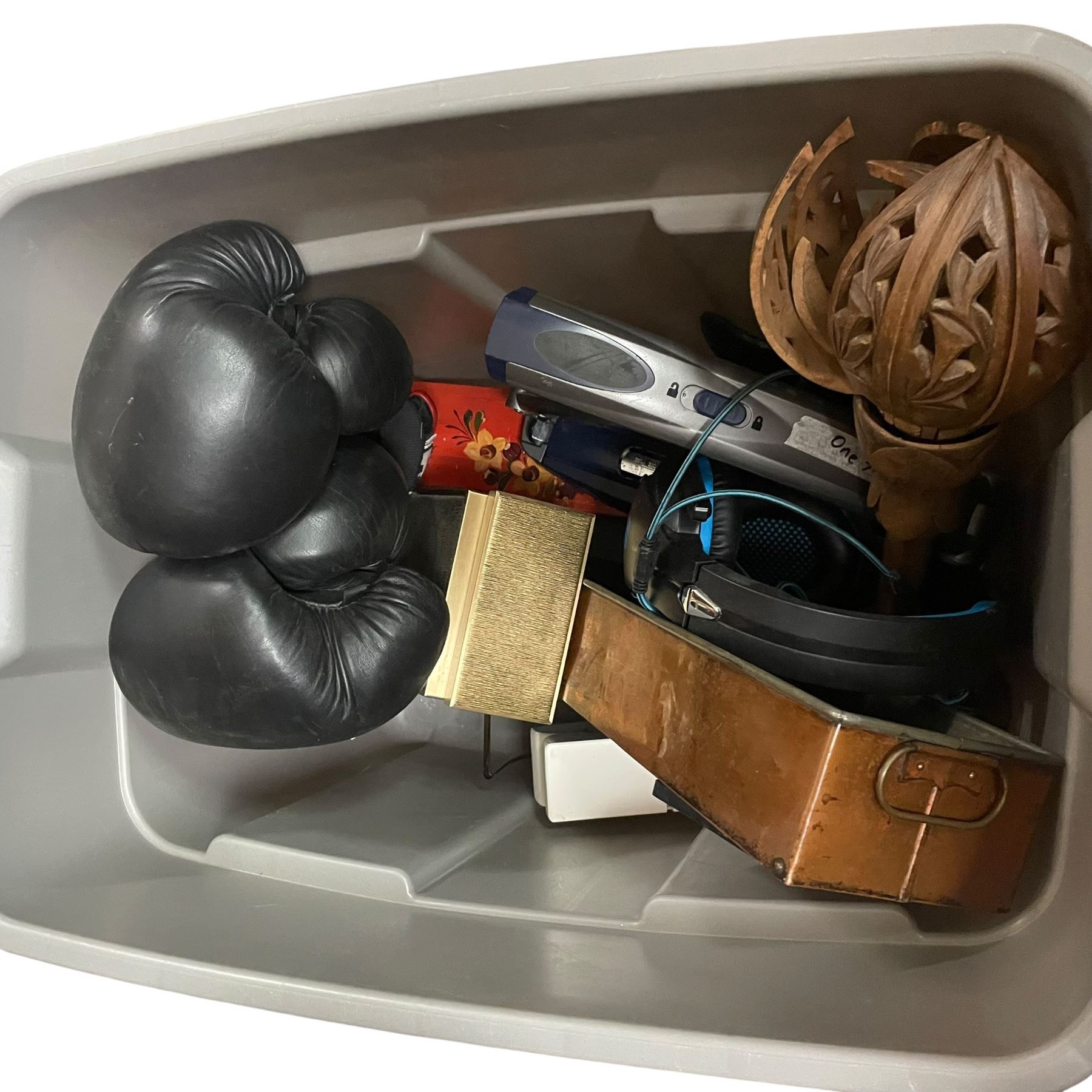 Lot 836 Boxing Gloves, Jewelry Boxes, Hole Punch, Headphones and More