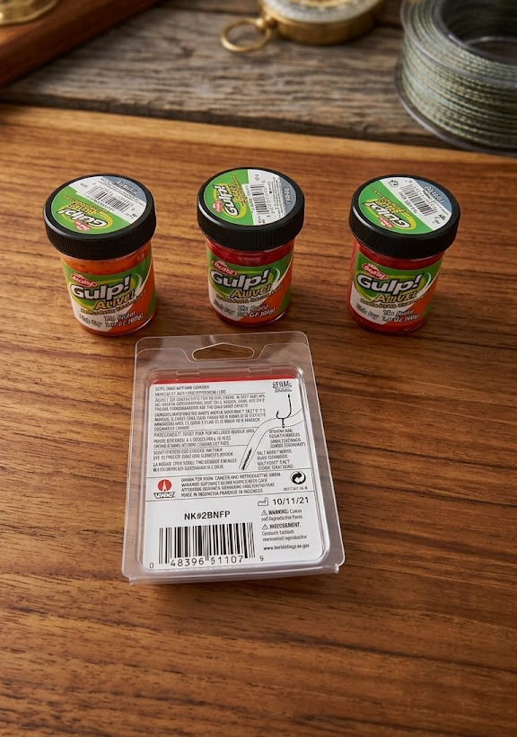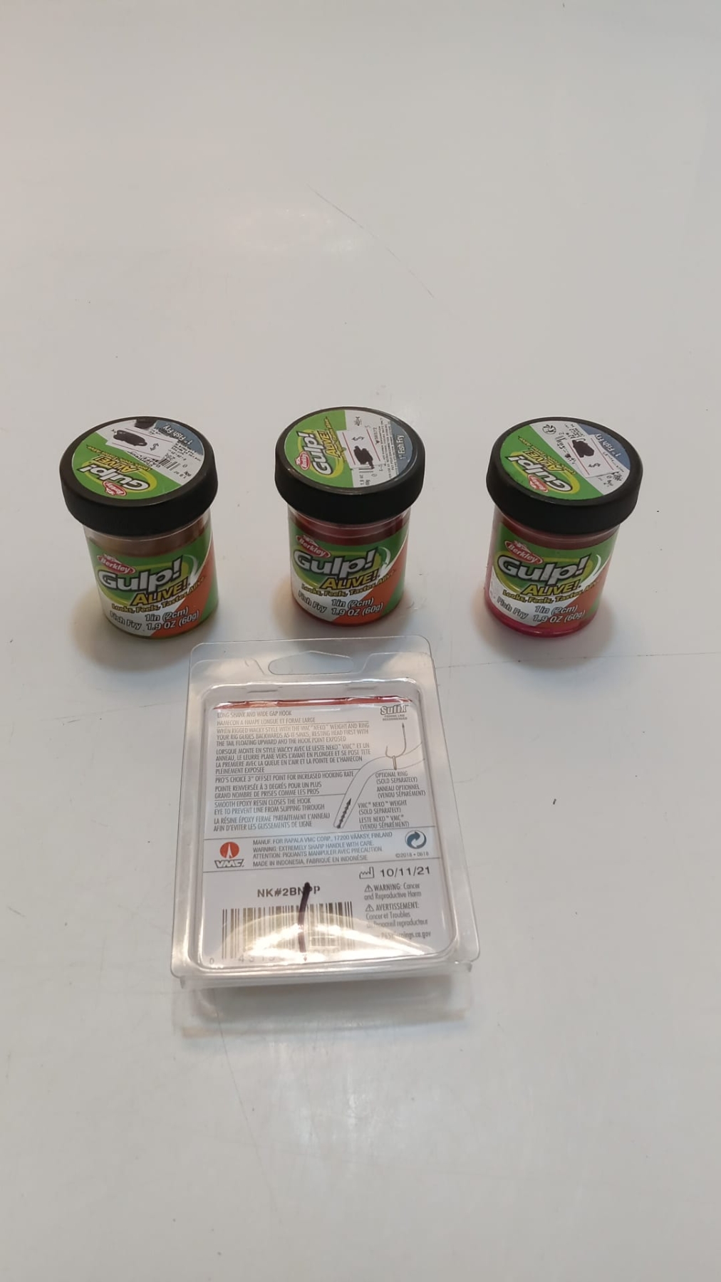 Lot 74 3 FISH FRY FLUORESCENT ORANGE & HOOK LOT 3 GULPS 1 FISHING HOOK -SU