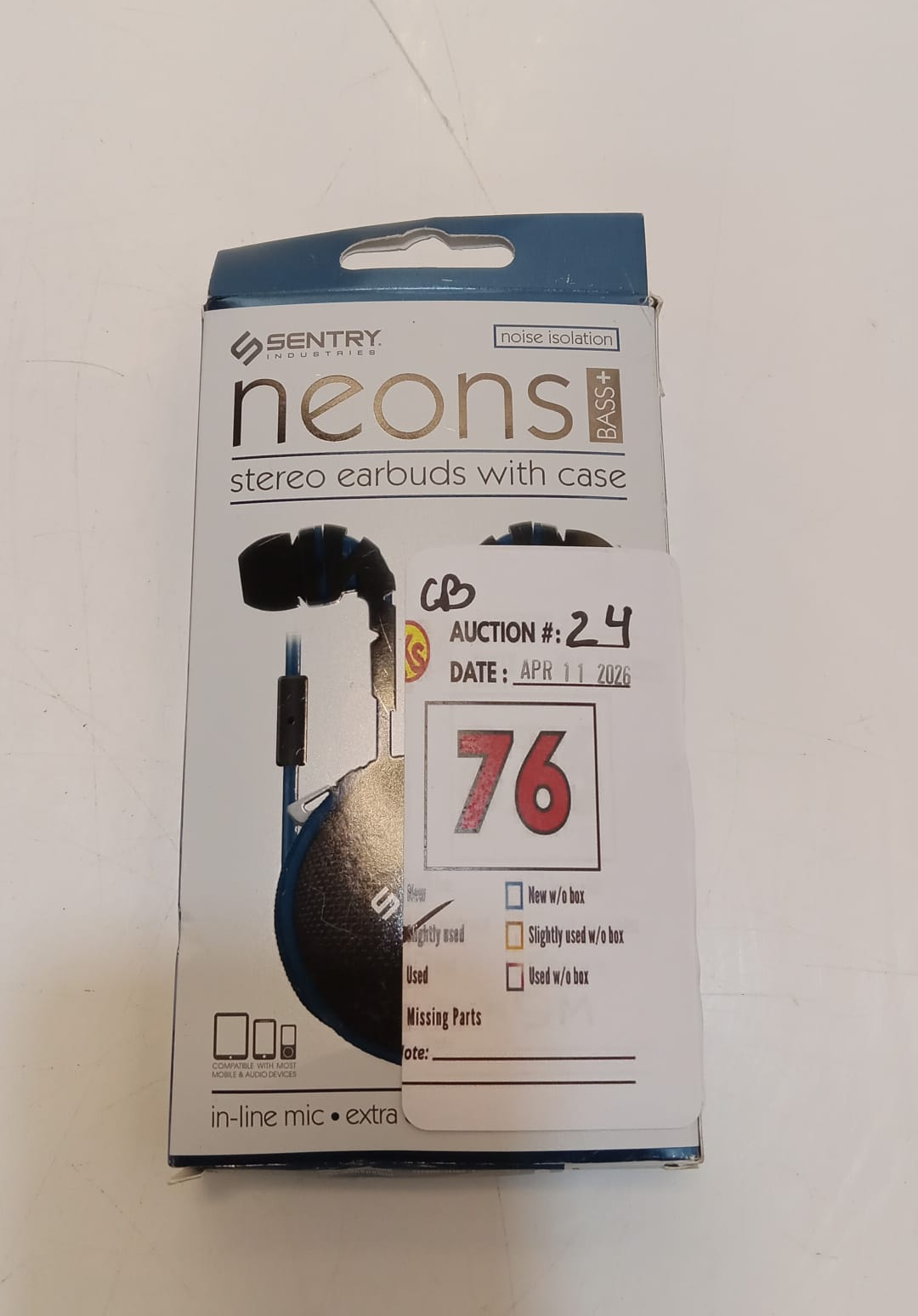 Lot 76 SENTRY NEONS WIRED EAR BUDS WITH ZIPPER CARRYING CASE BLUE -SU