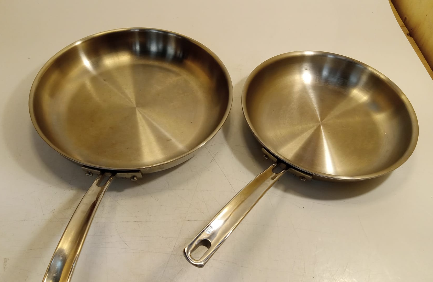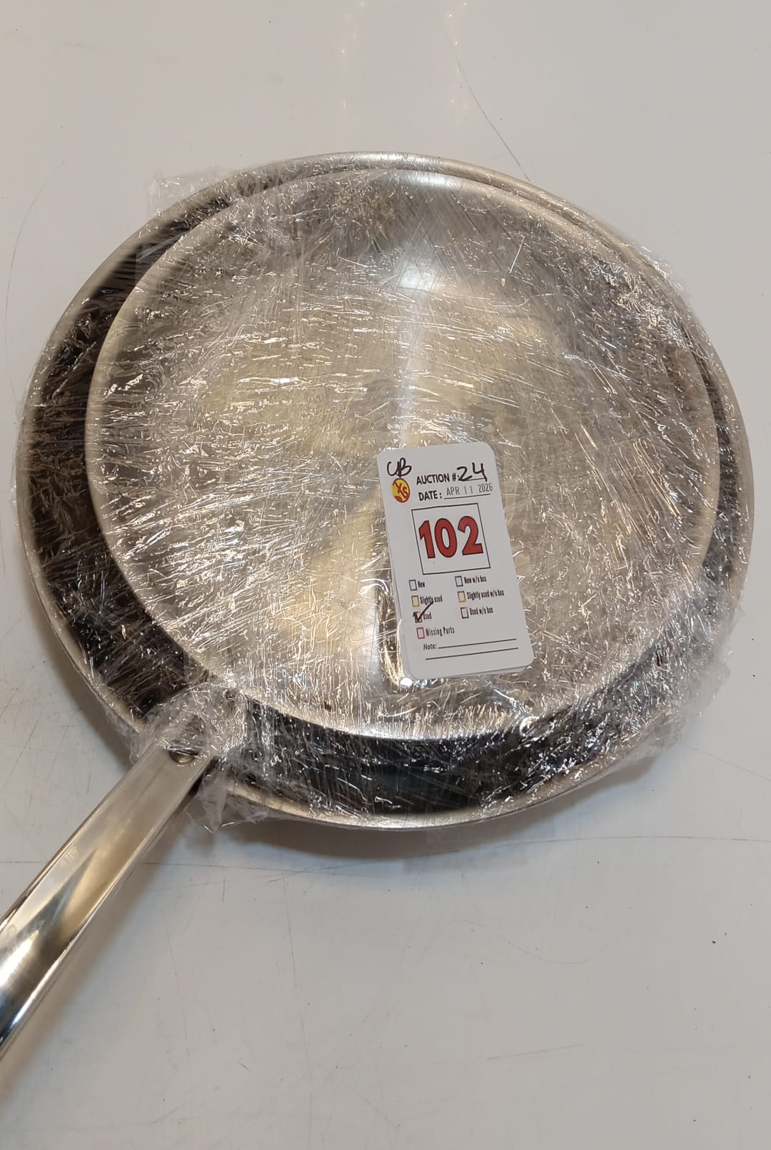 Lot 102 KIRKLAND SIGNATURE 5-PLY STAINLESS STEEL FRYING PAN 2 SET -U