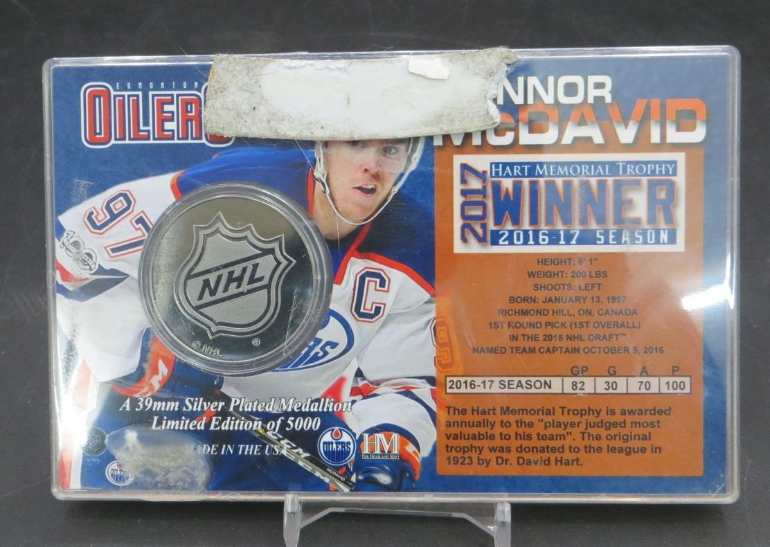 Lot 545 2017 Connor McDavid Silver Plated Medallion & Collector Card Limited /5000