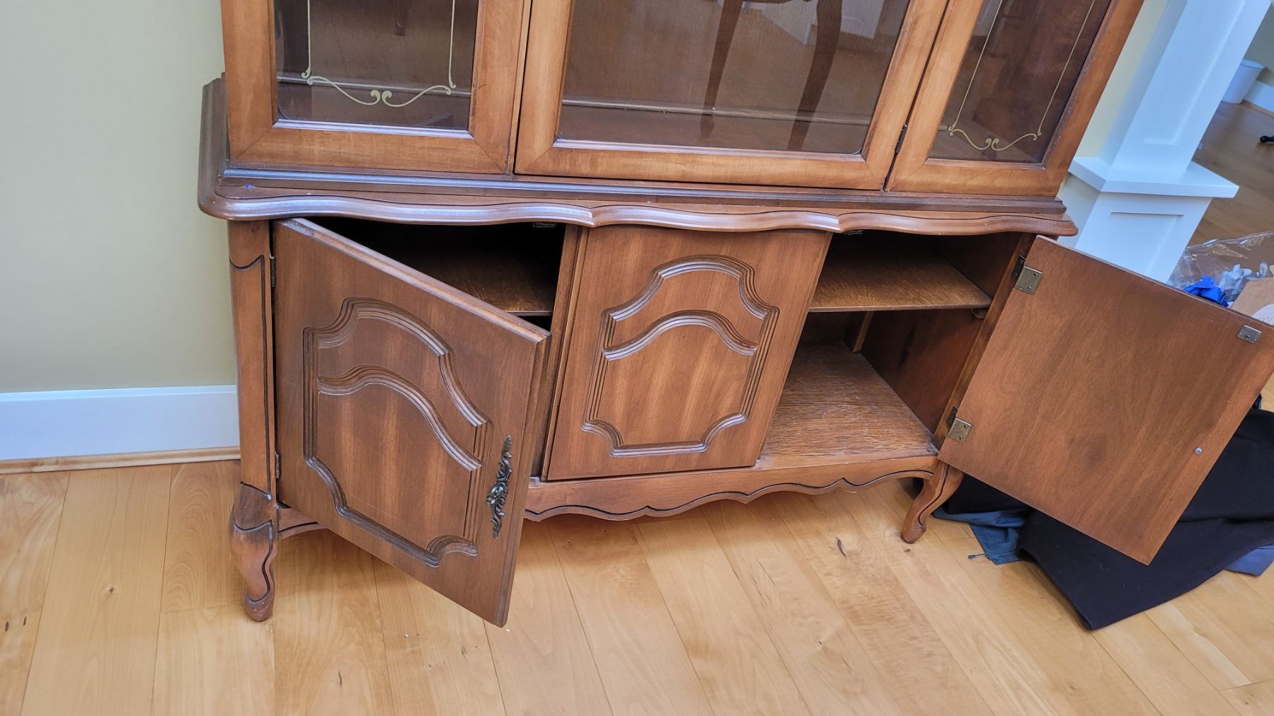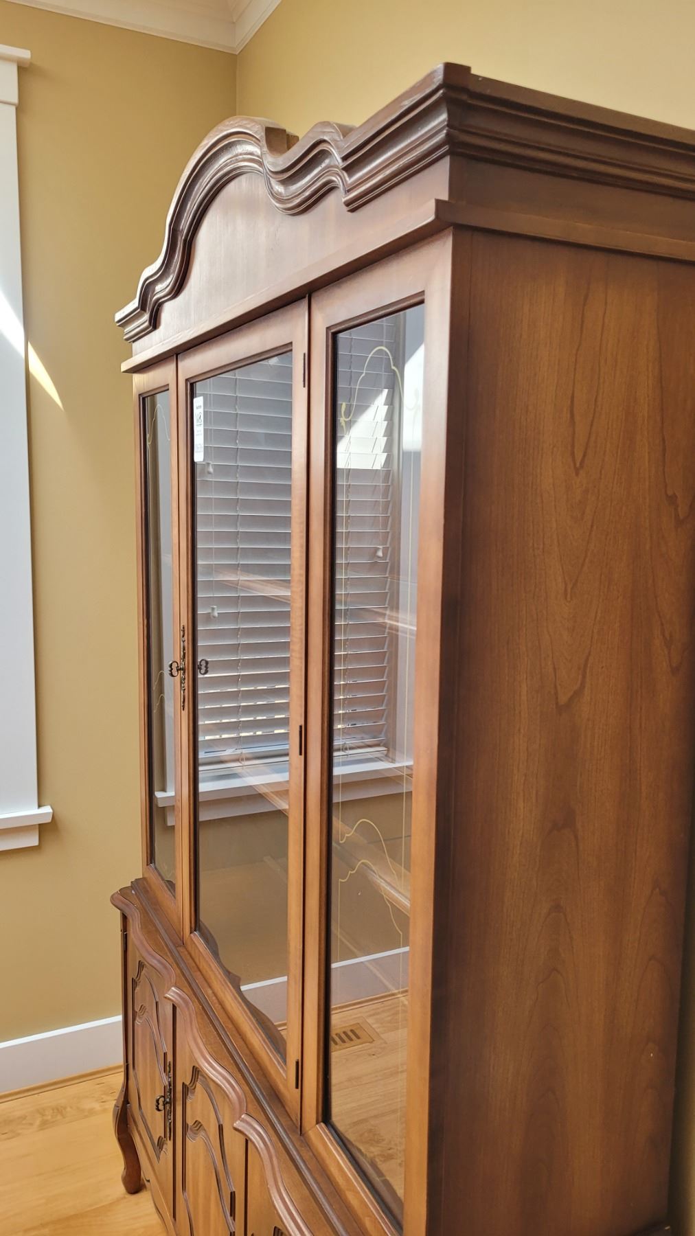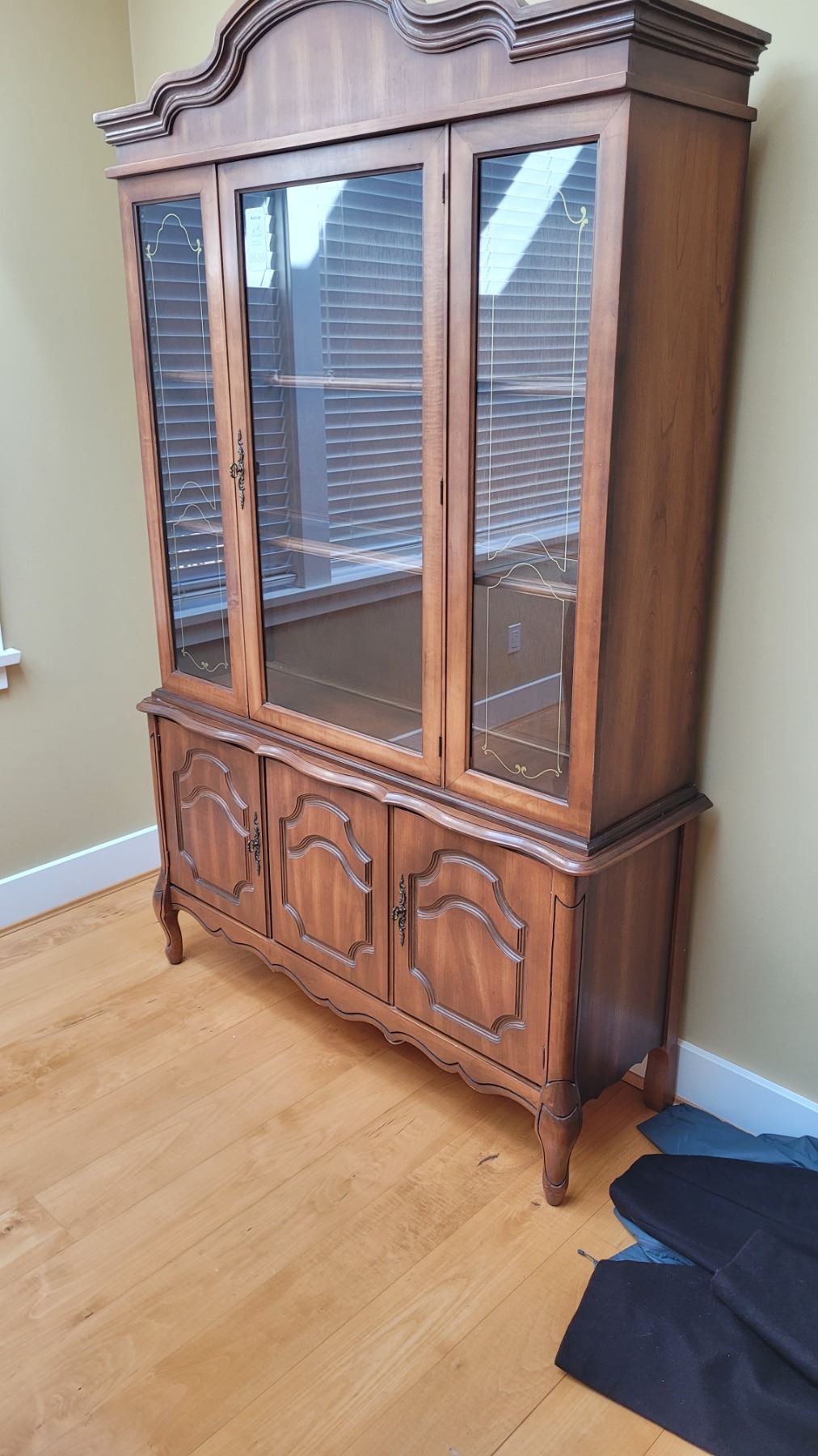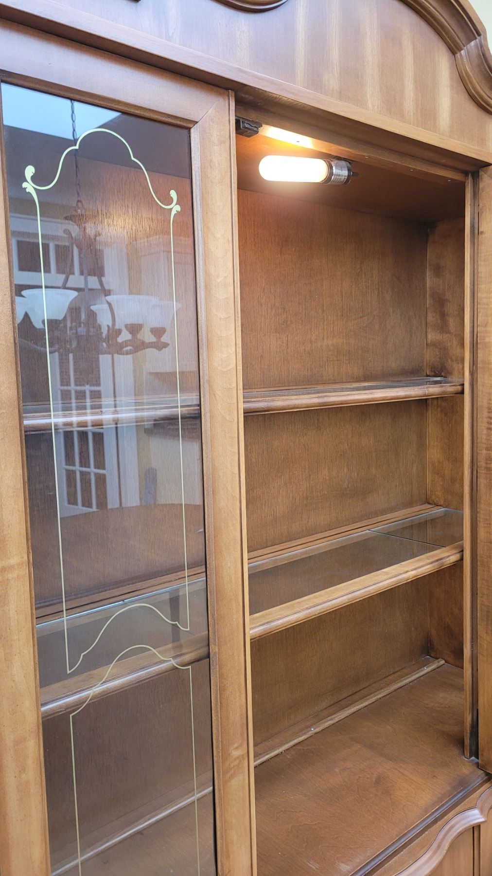 China cabinet with light and glass shelves, 48x16x79. Pick up 10-11