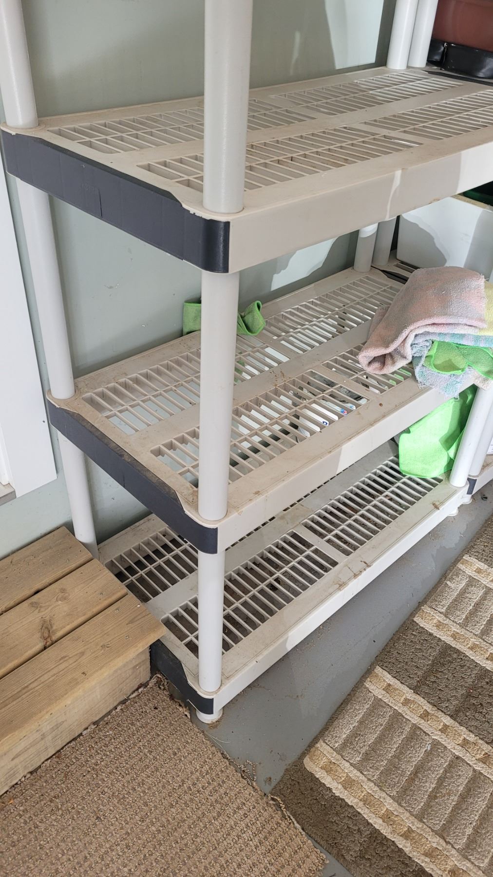 Unit of 4 plastic shelves 36x18x56. Pick up 9-10