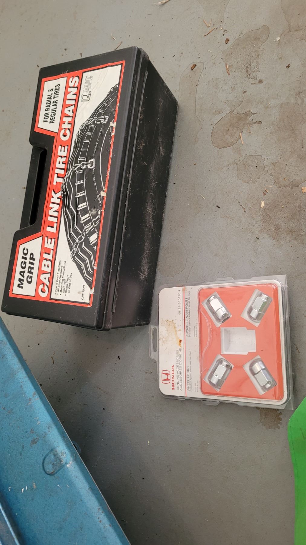 Tire chains, jumper cables, wrench set, more. Pick up 9-10