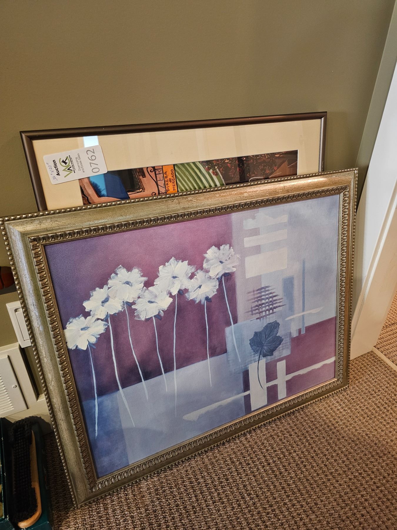 2 pieces of framed art largest is 32x27. Pickup at 10 am