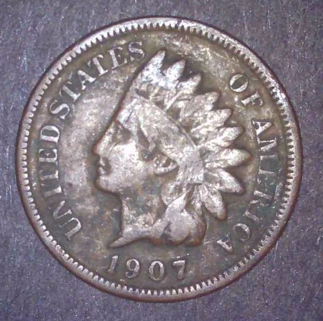 Lot 325 1907 USA Indian Head Penny 1 Cent Coin