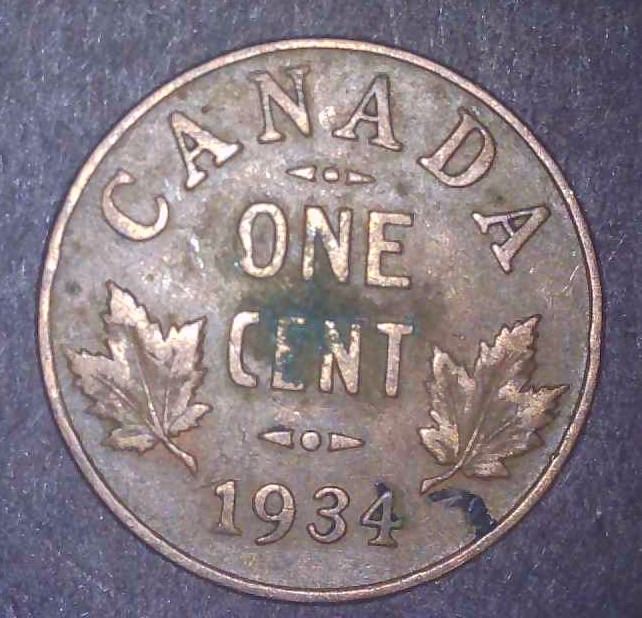 Lot 327 1934 Canadian Penny One Cent Coin