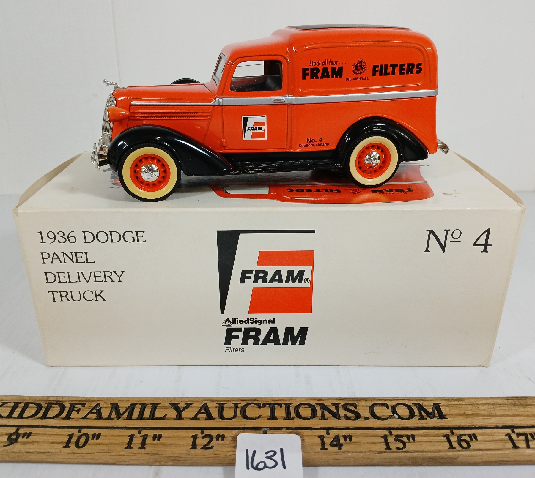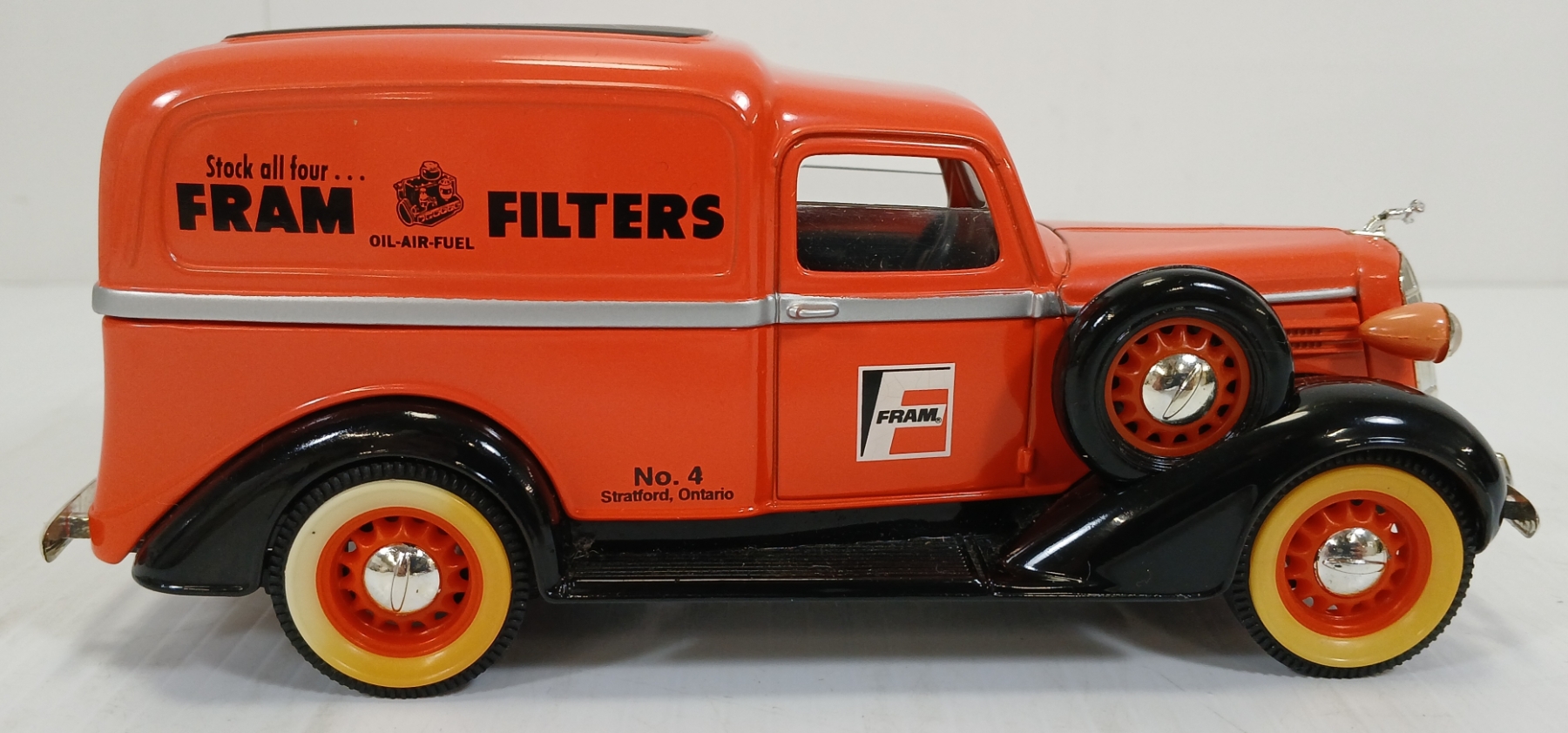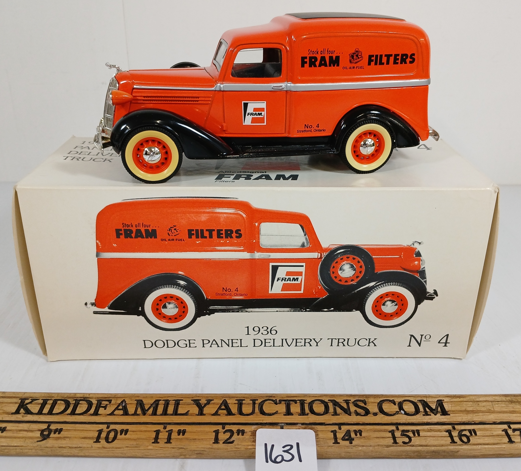 Lot 1631 LIBERTY CLASSICS DIECAST 1936 DODGE PANEL DELIVERY TRUCK COIN BANK - FRAM