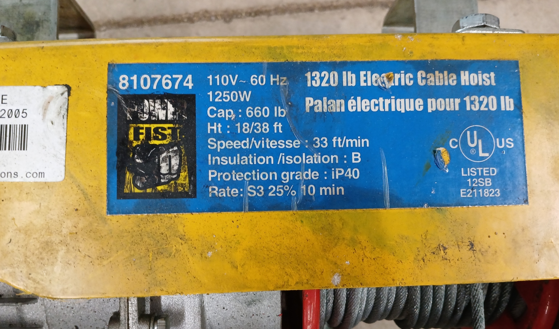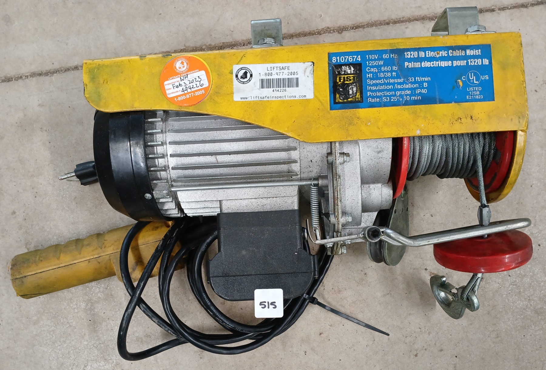 Lot 515 ELECTRIC CABLE HOIST - 1320LB