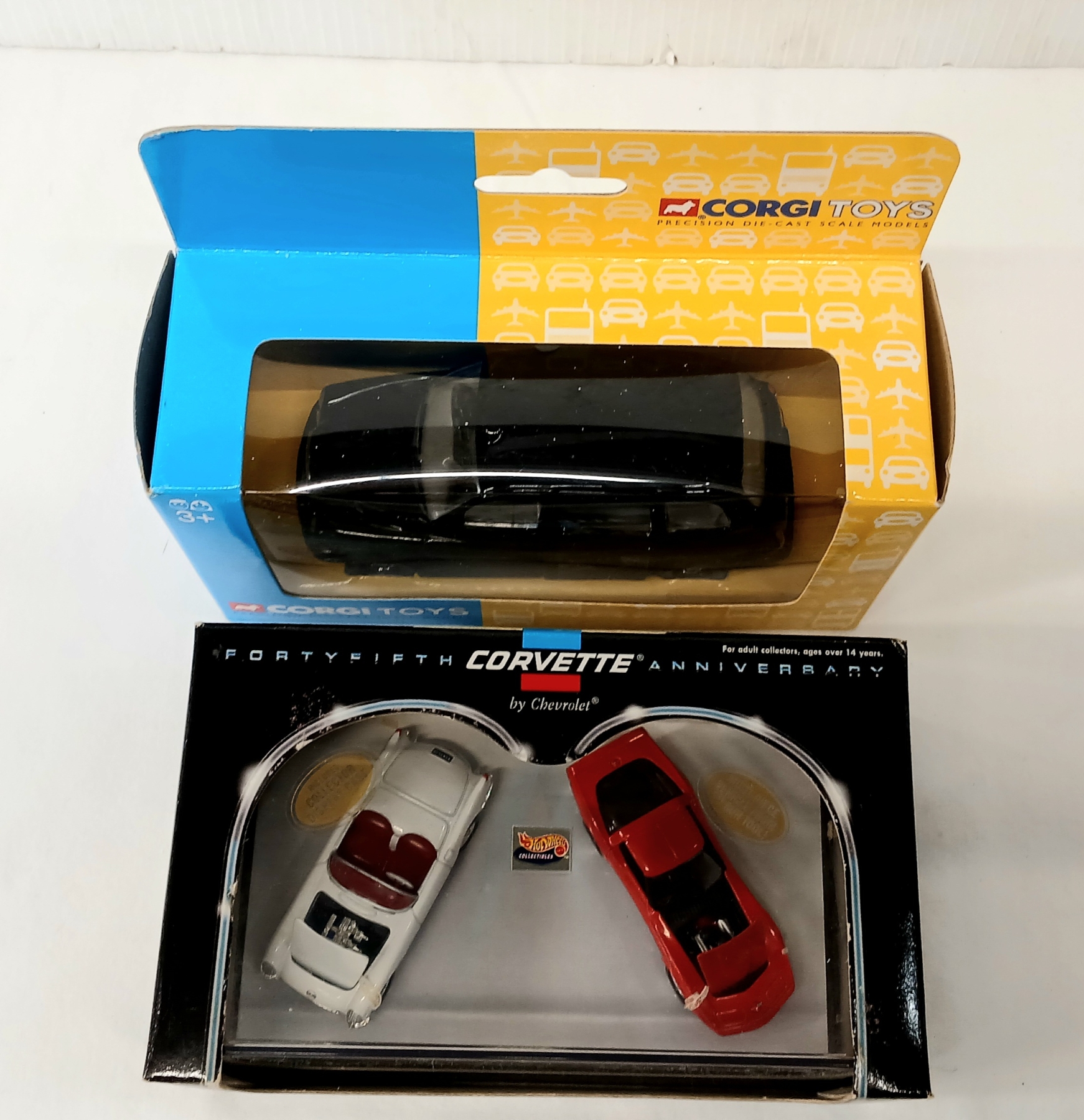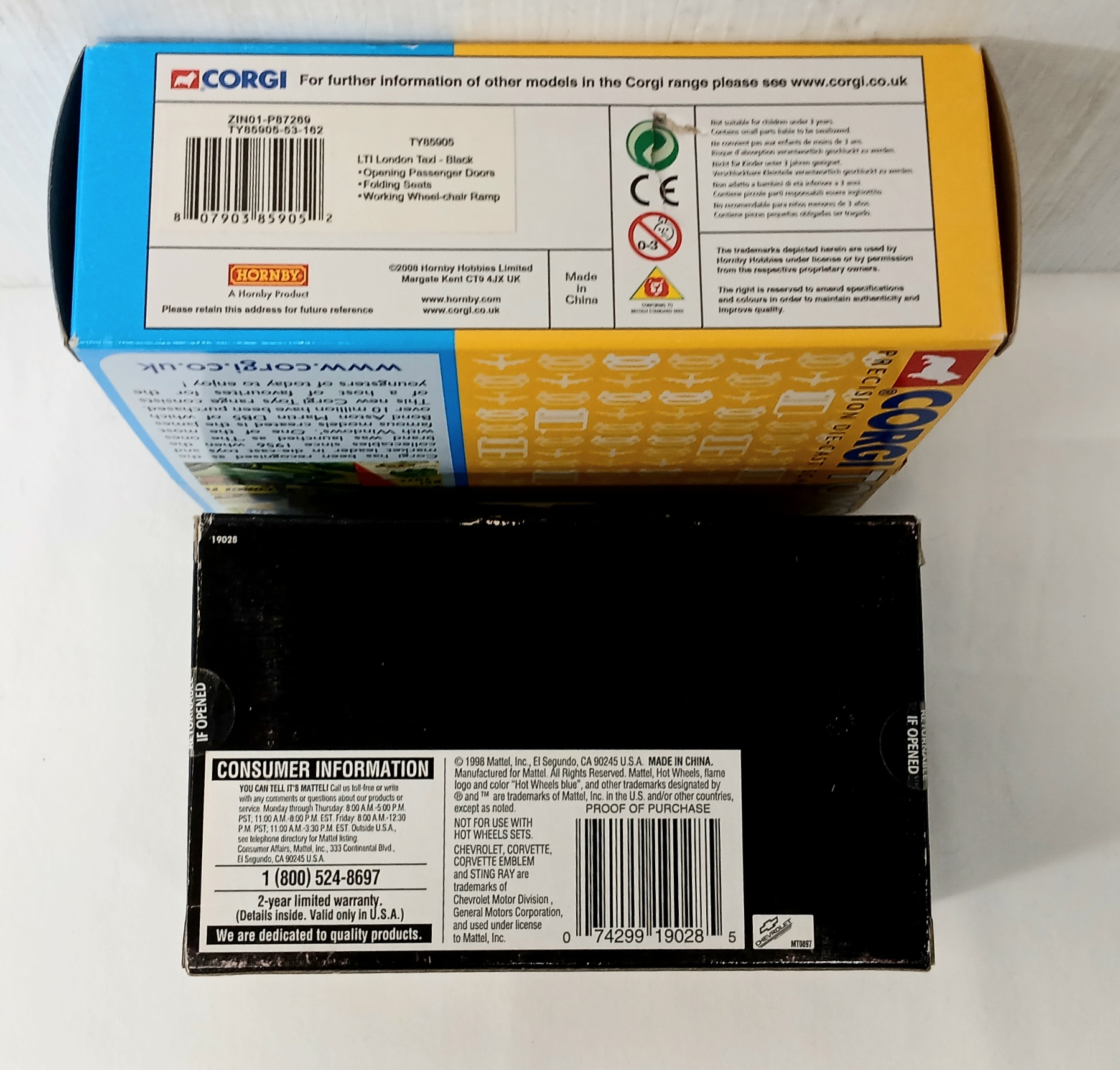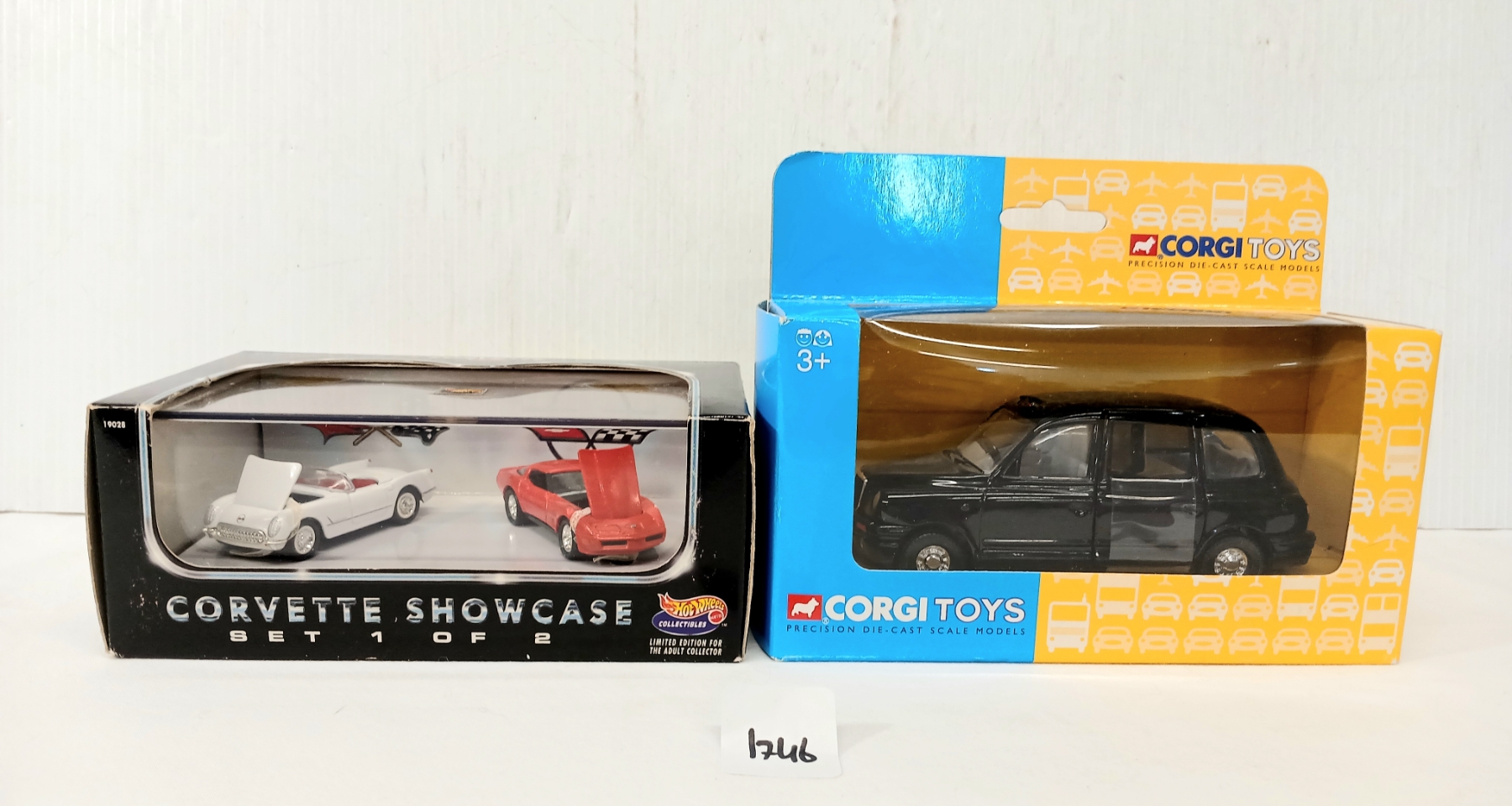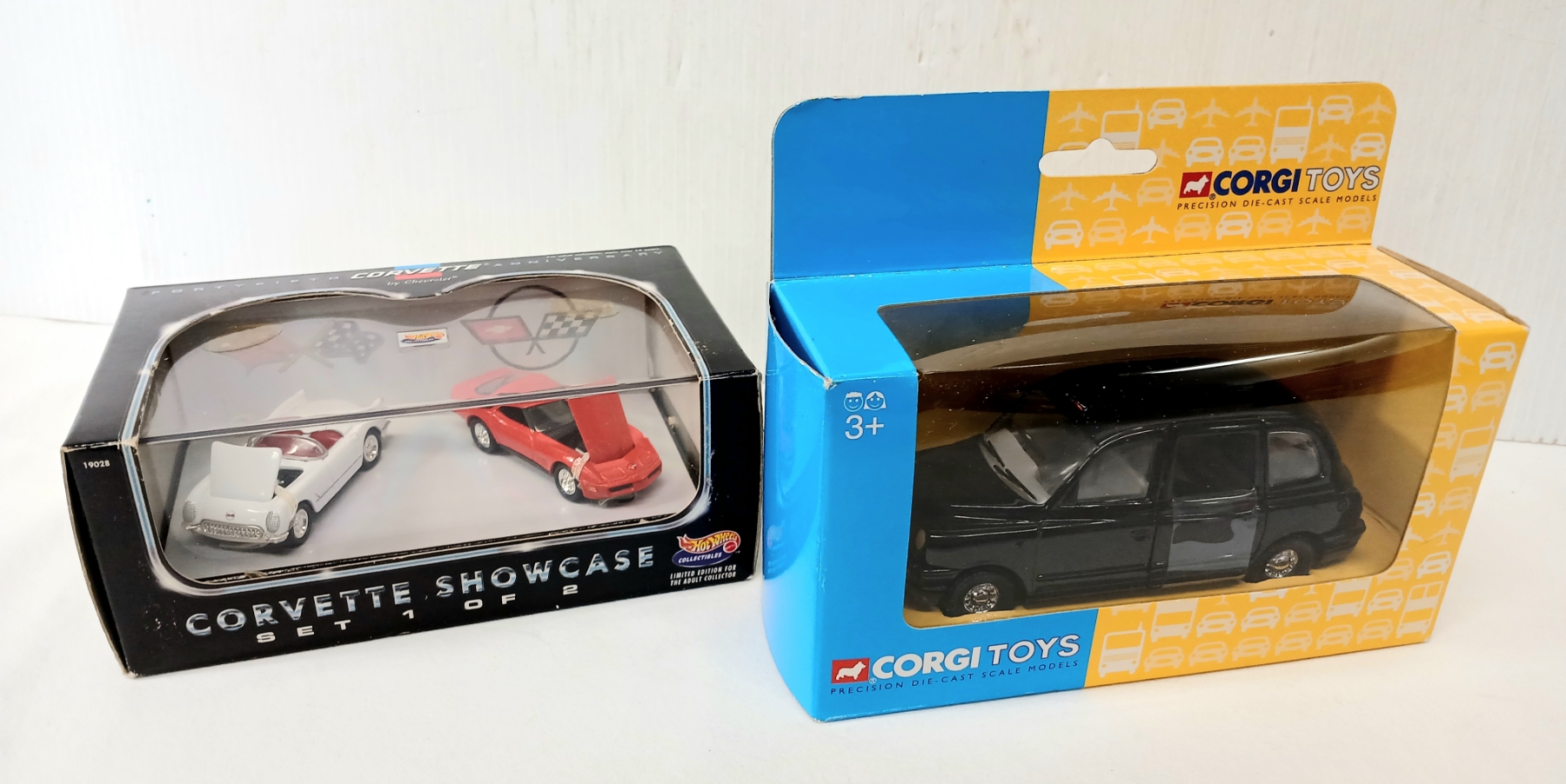 Lot 1746 LOT OF 2 - HOTWHEELS DIECAST CORVETTE SHOWCASE & CORGI LTI LONDON TAXI MODELS - SEALED