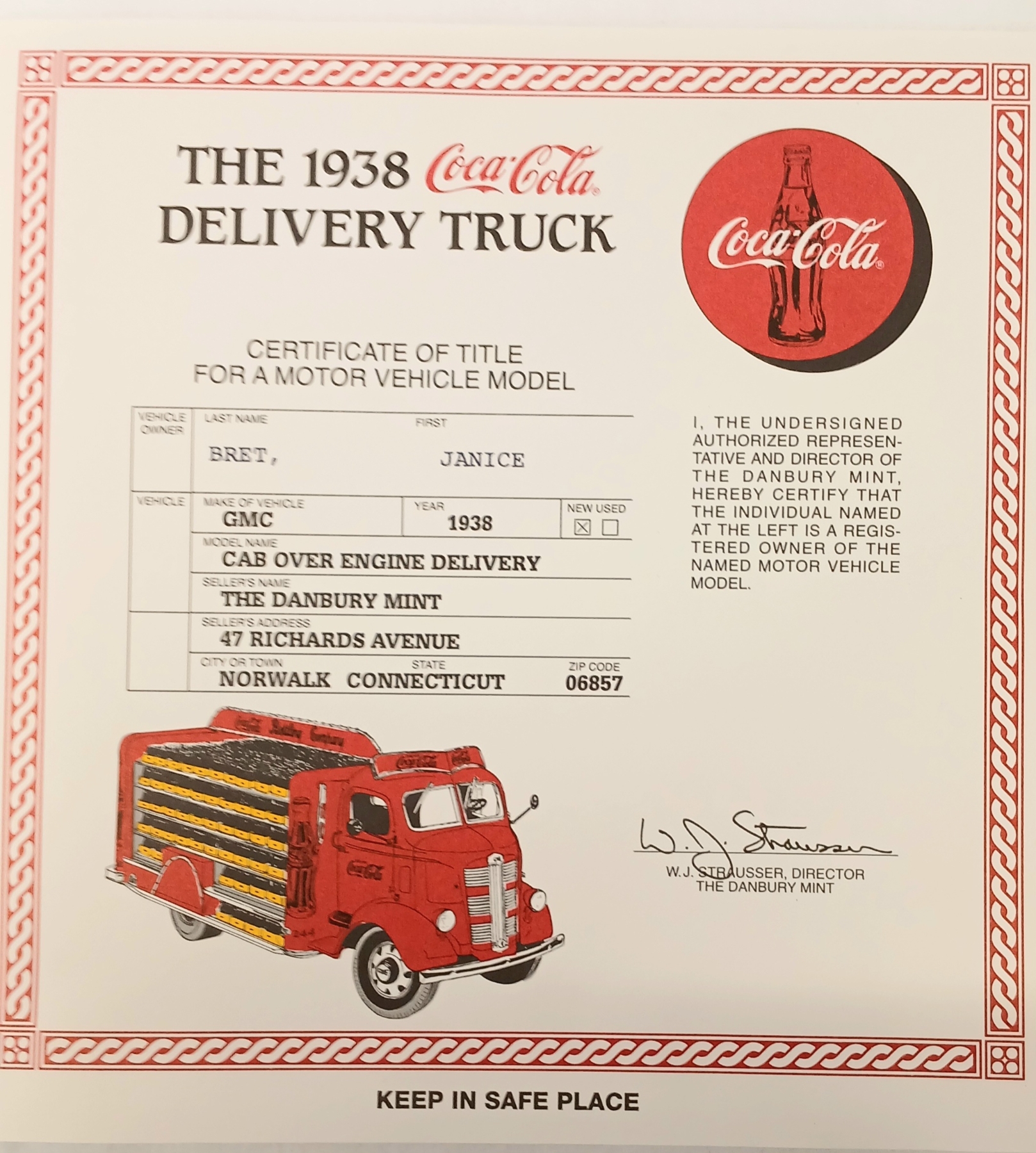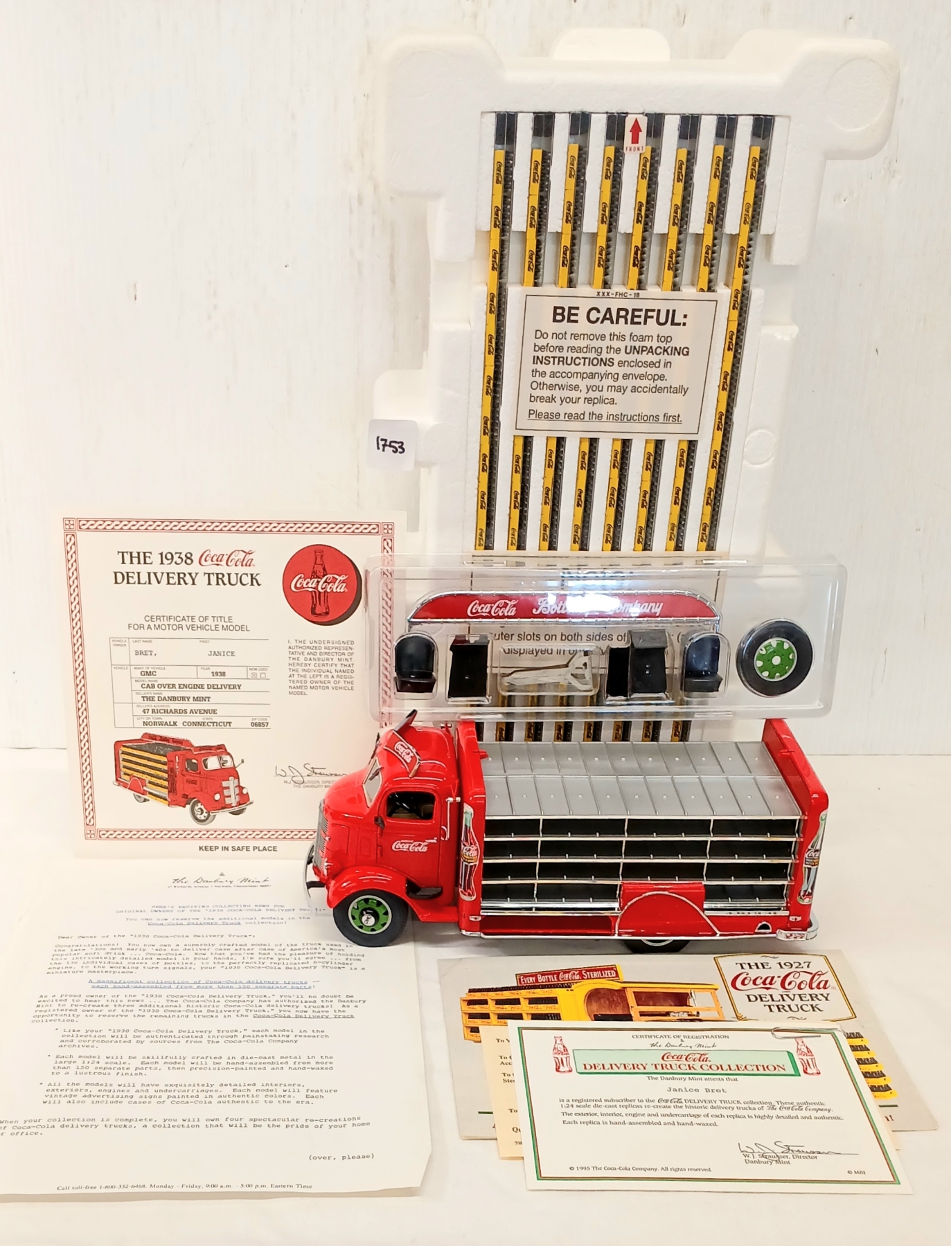 Lot 1753 DANBURY MINT DIECAST 1938 COCA-COLA DELIVERY TRUCK MODEL