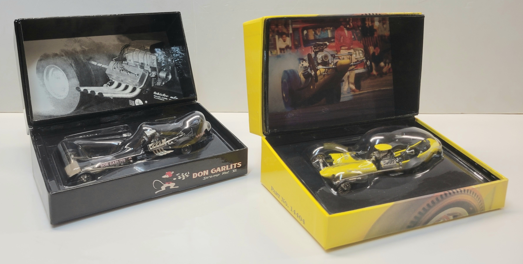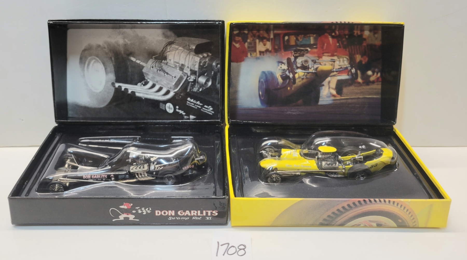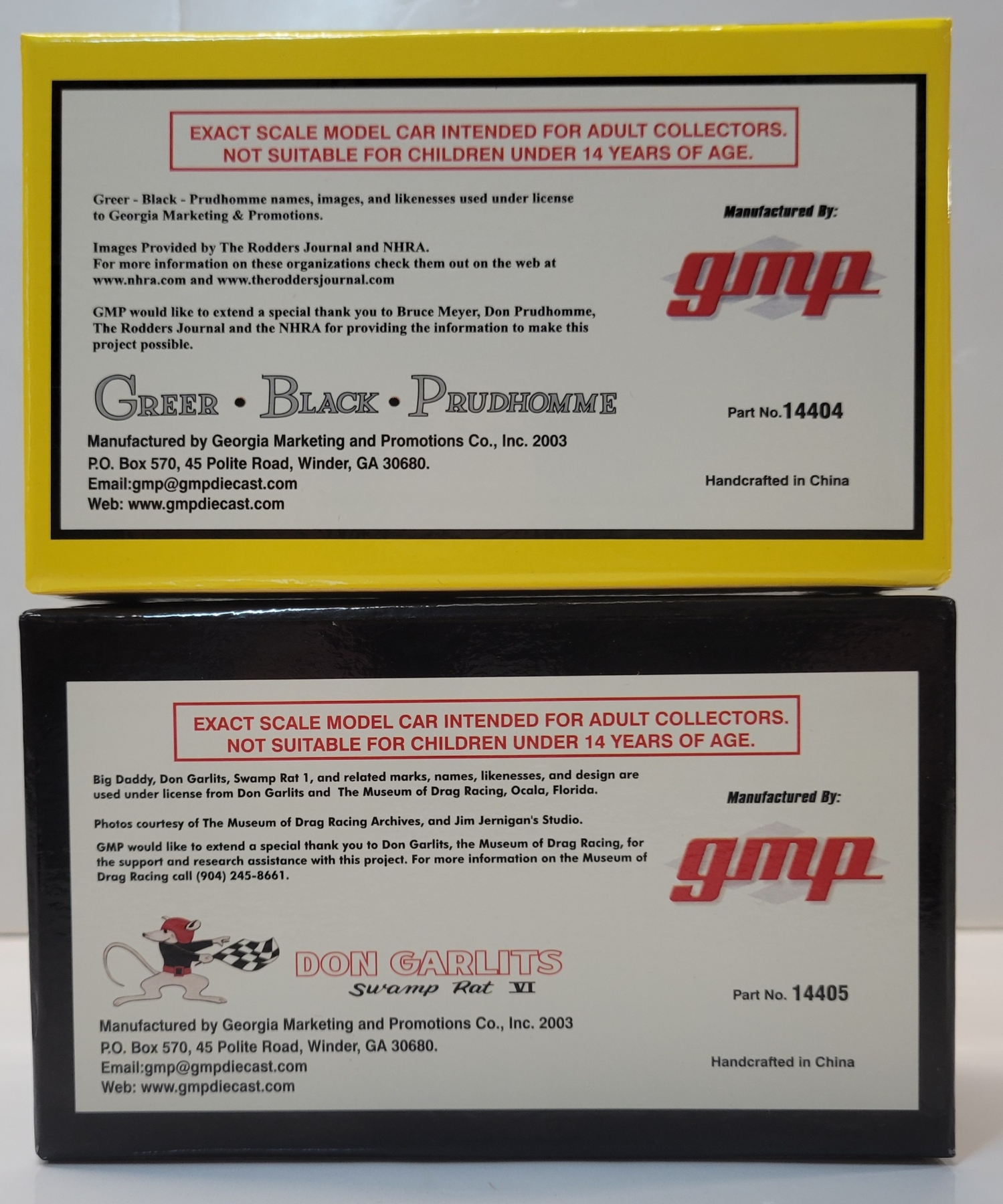 Lot 1708 LOT OF 2 - GMP DON GARLITS SWAMP RAT VI & GREER BLACK PRUDHOMME DIECAST MODELS