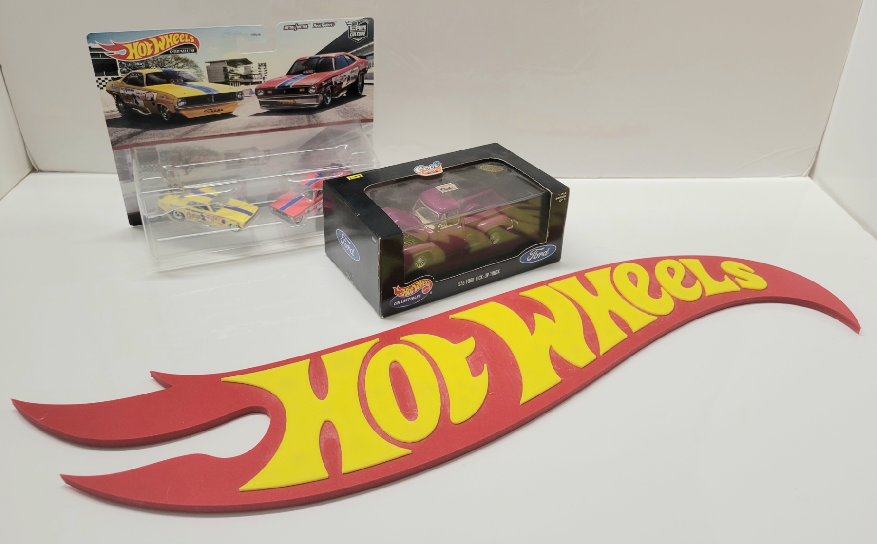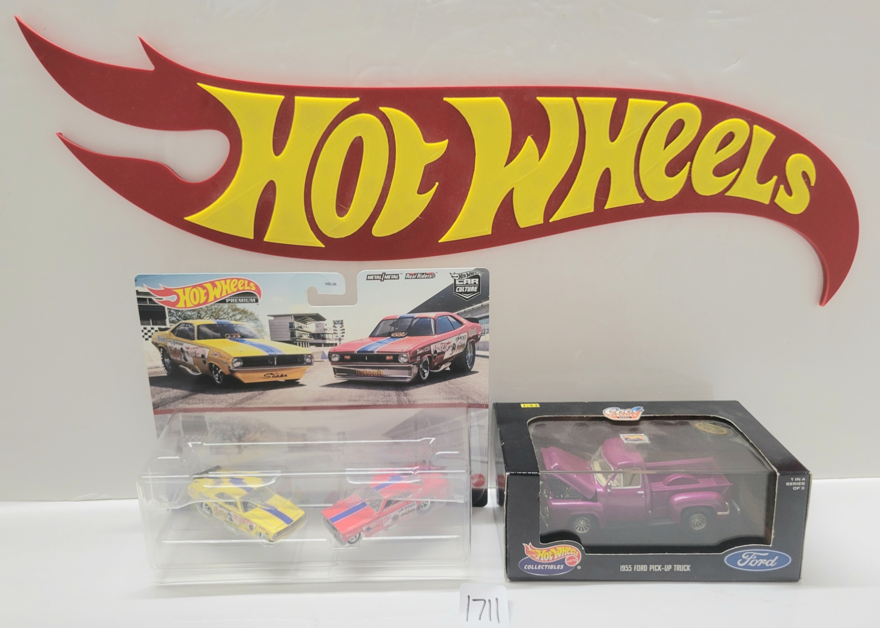 Lot 1711 LOT OF 3 - HOTWHEELS CAR CULTURE & COOL CLASSICS DIECAST MODEL SETS & HOTWHEELS SIGN