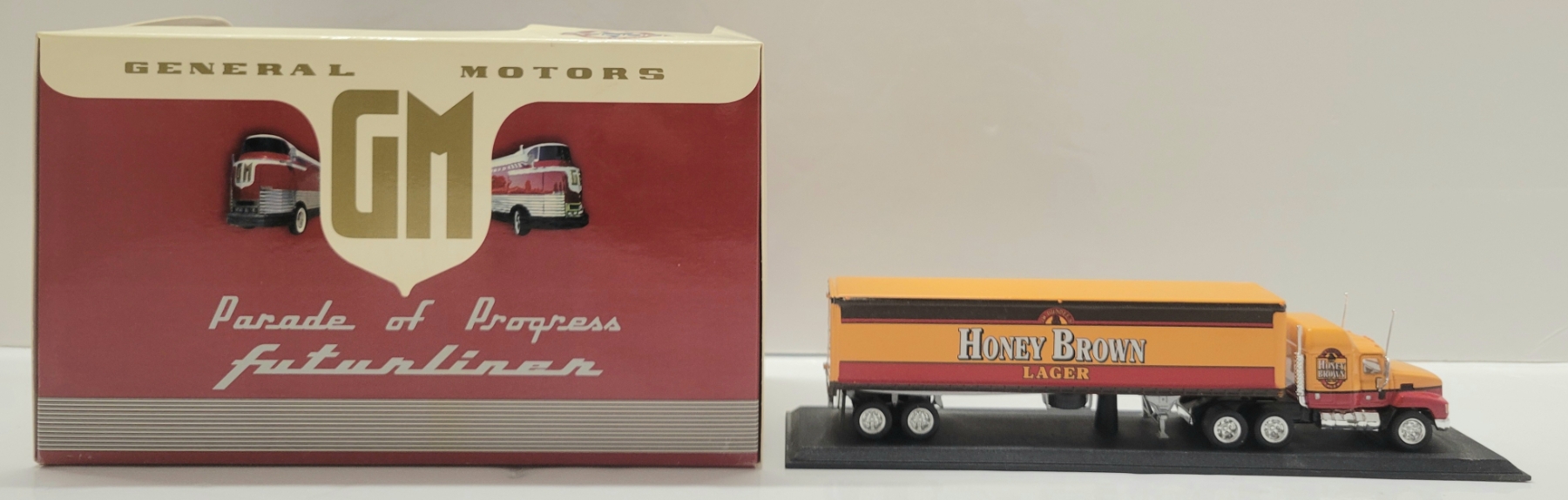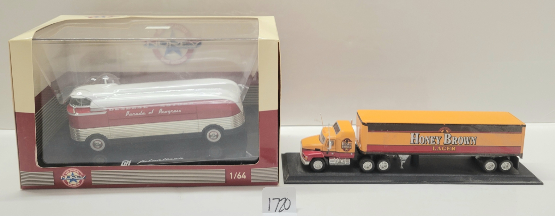 Lot 1720 LOT OF 2 - NOREY GM PARADE OF PROGRESS BUS & HONEY BROWN LAGER TRUCK DIECAST MODELS