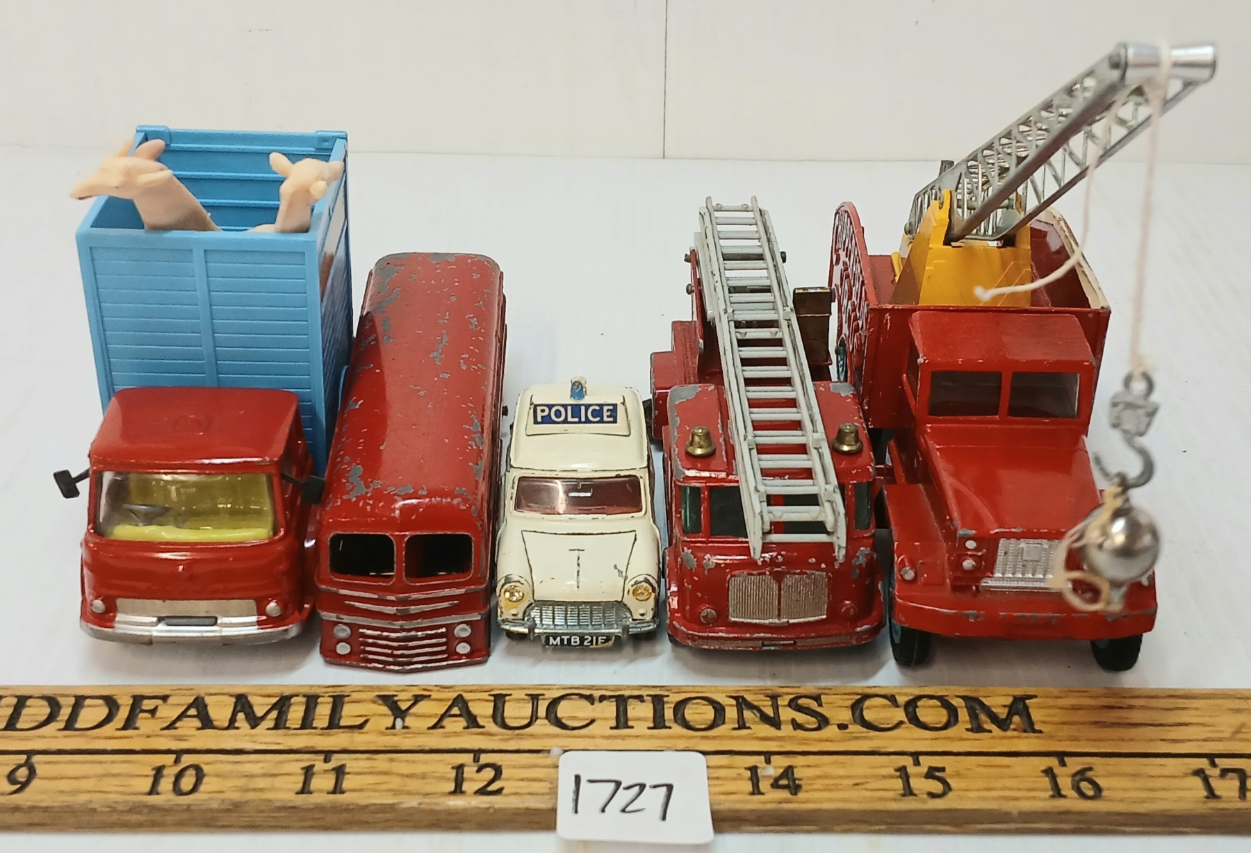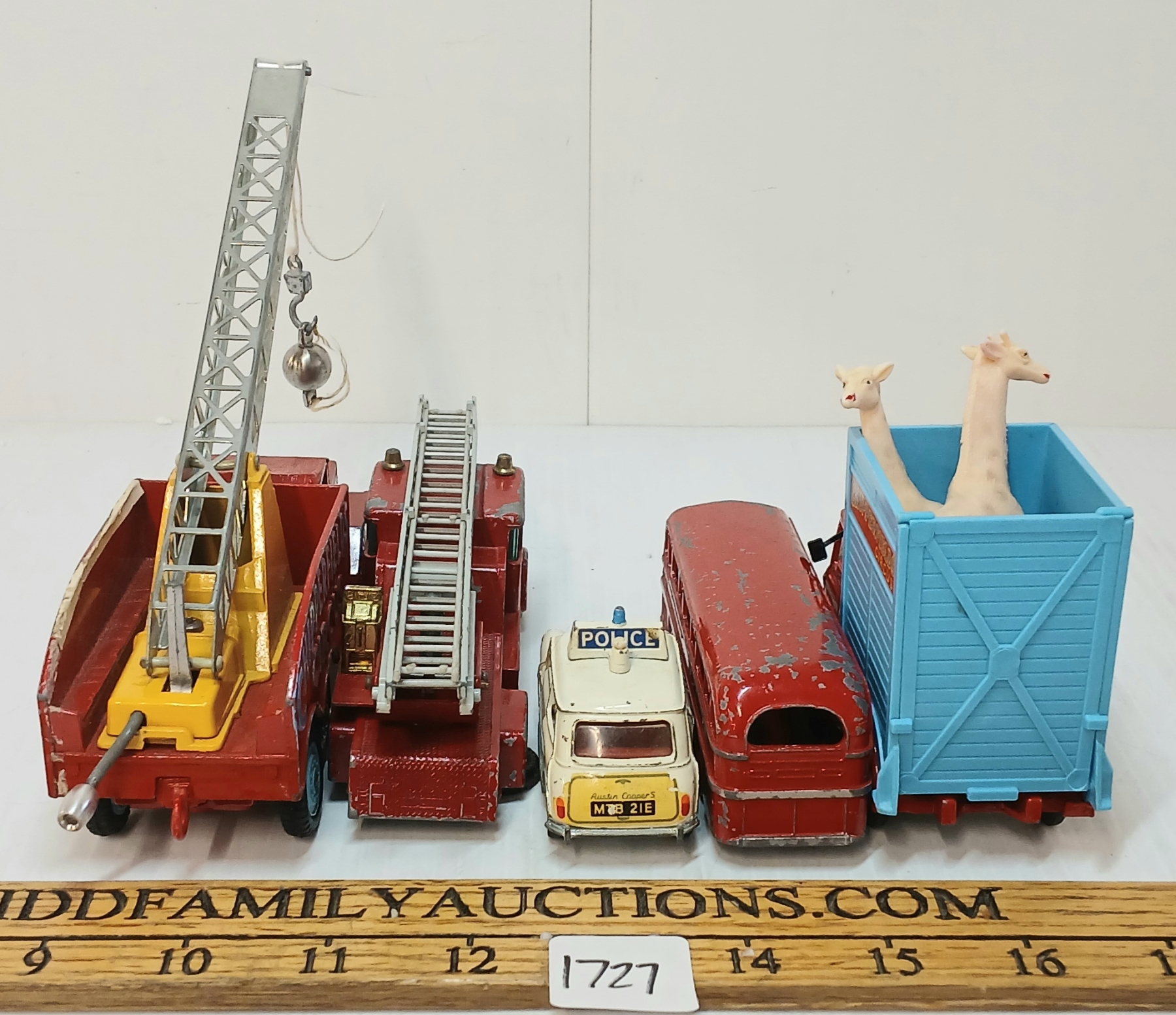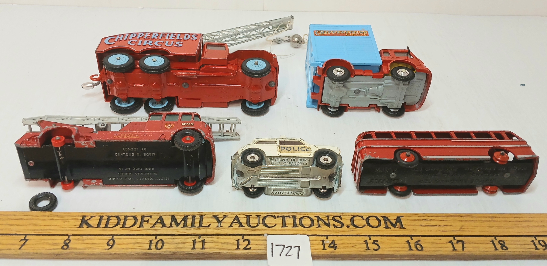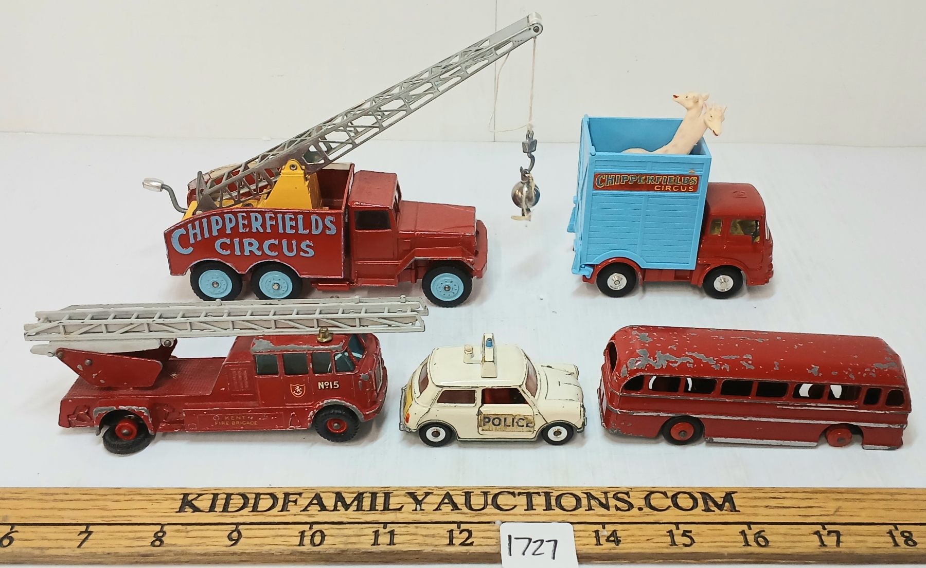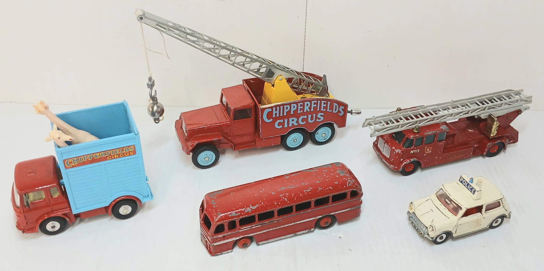 Lot 1727 LOT OF 5 - CORGI, DINKY & LESNEY DIECAST CIRCUS, POLICE & BUS MODELS