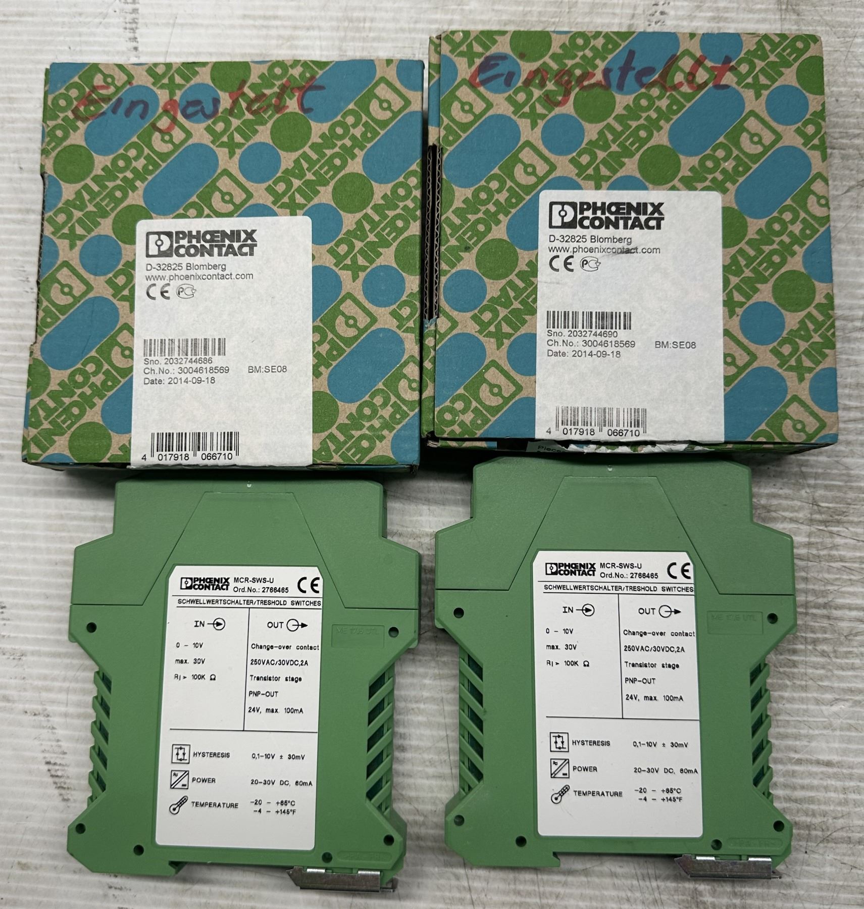 (4) Phoenix Contact #27 66 46 5/MCR-SWS-U Treshold Switches