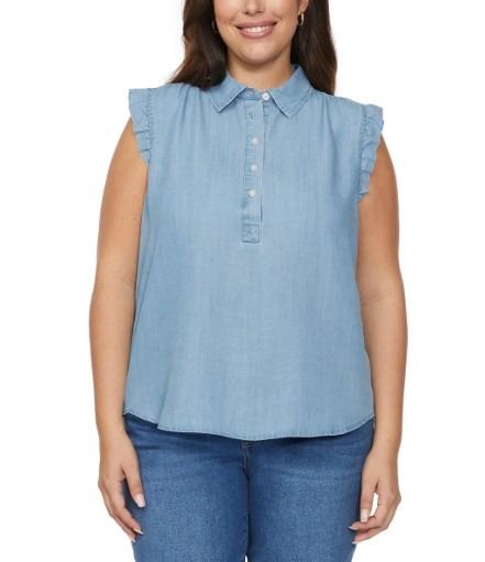 Lot 7816 NEW LOFT RUFFLED SLEEVELESS DENIM TOP SIZE MED