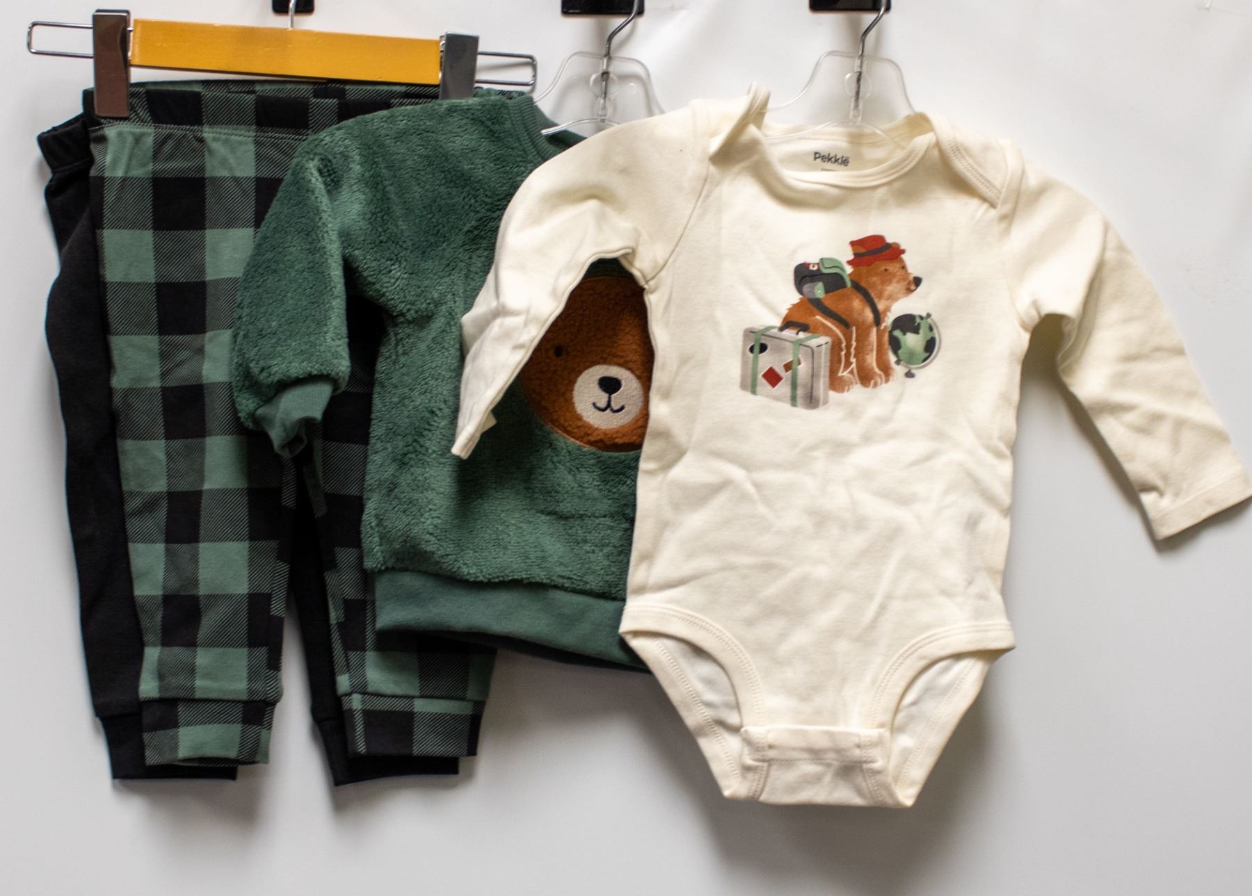 Lot 7840 NEW PEKKLE KIDS 4PC PLUSH PAJAMA SET SIZE 12M