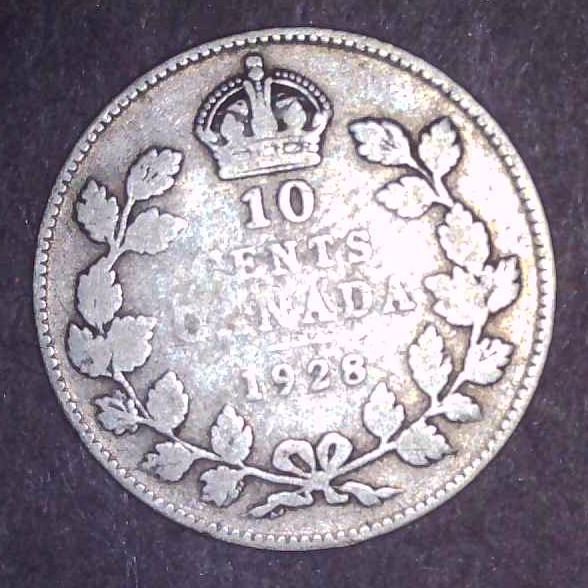 Lot 347 1928 Canadian Silver 10 Cent Coin
