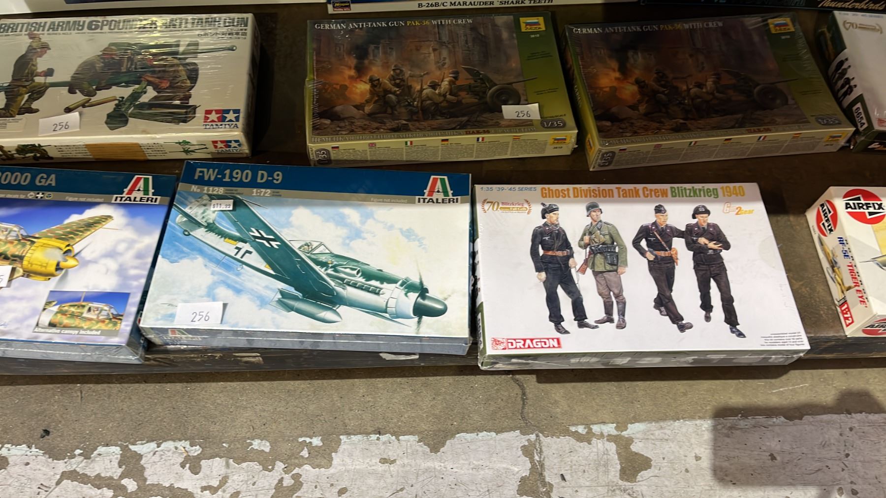 Lot 256 SHELF OF ASSORTED AIRPLANE MODEL KITS & PLASTIC FIGURE KITS: DRAGON, ITALERI, AIRFIX & MORE