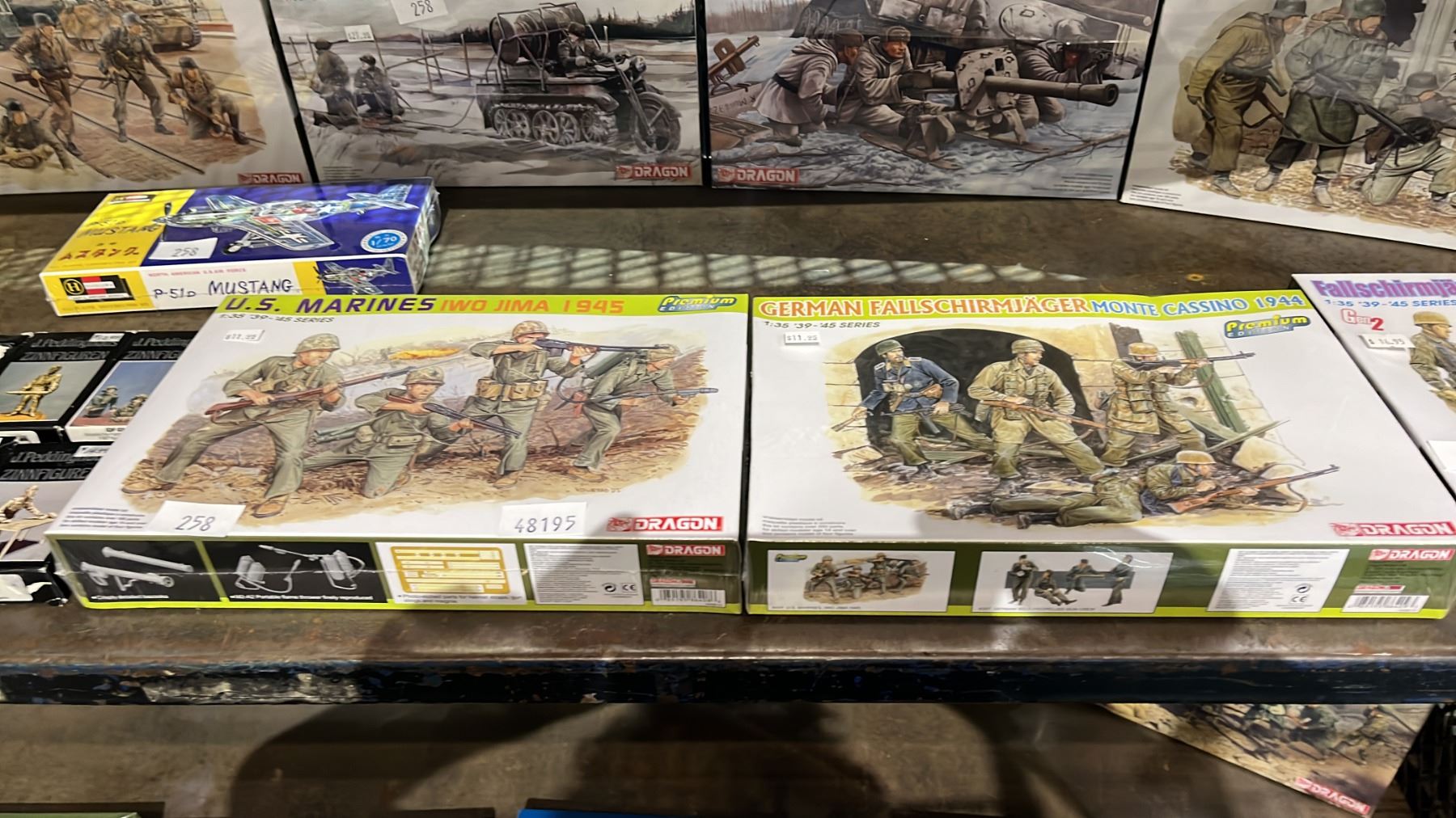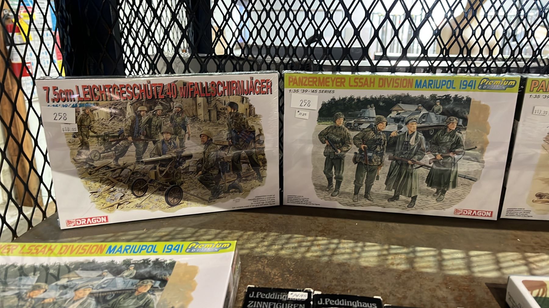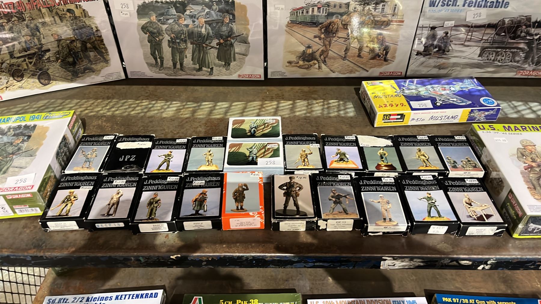 Lot 258 SHELF OF ASSORTED DRAGON FIGURE KITS & J. PEDDINGHAUS ZINNFIGUREN INDIVIDUALLY BOXED FIGURES