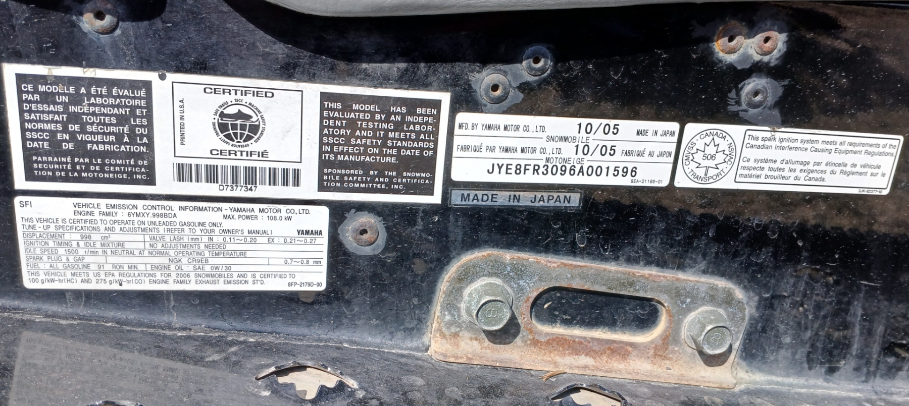 Lot 522 2006 YAMAHA APEX RTX SNOWMOBILE