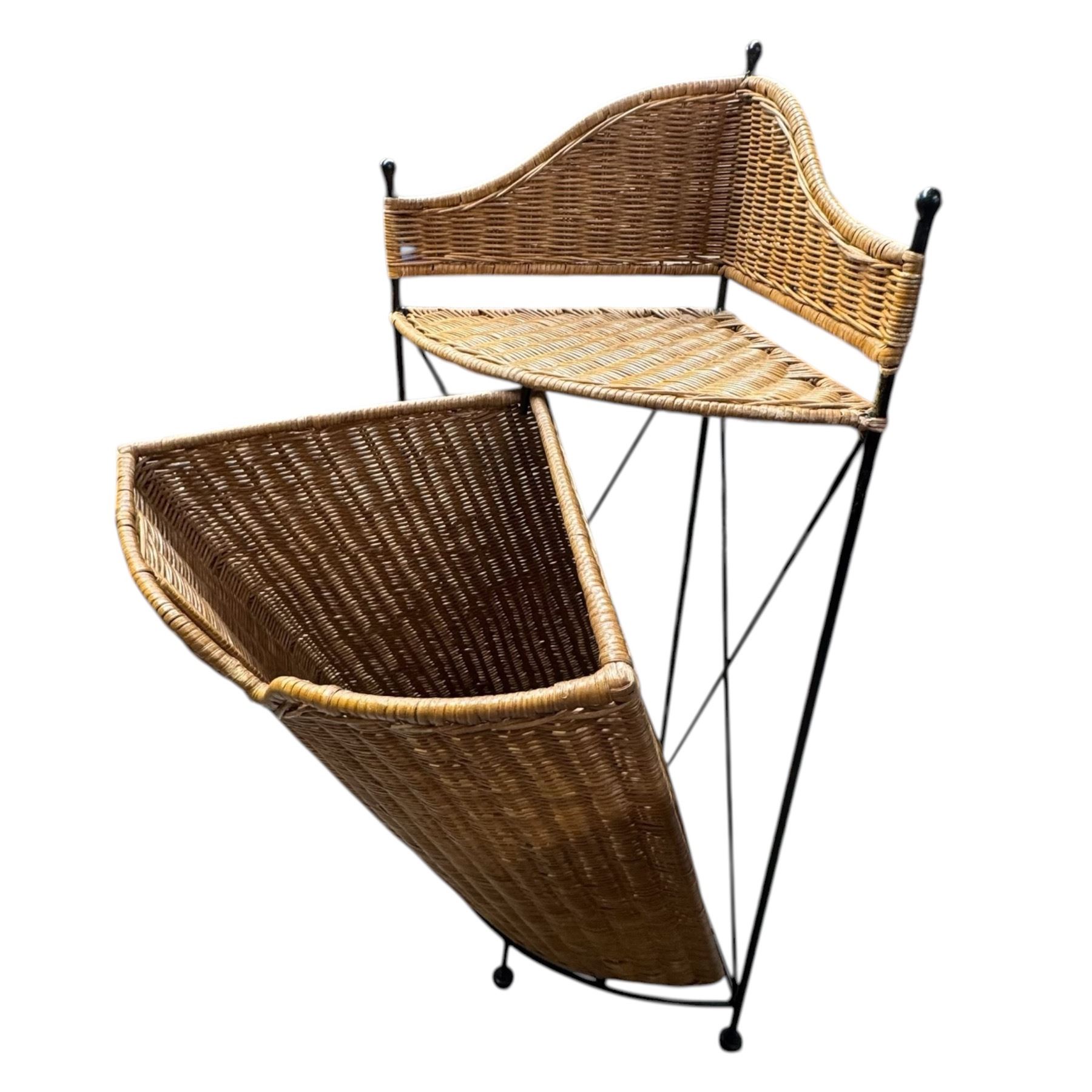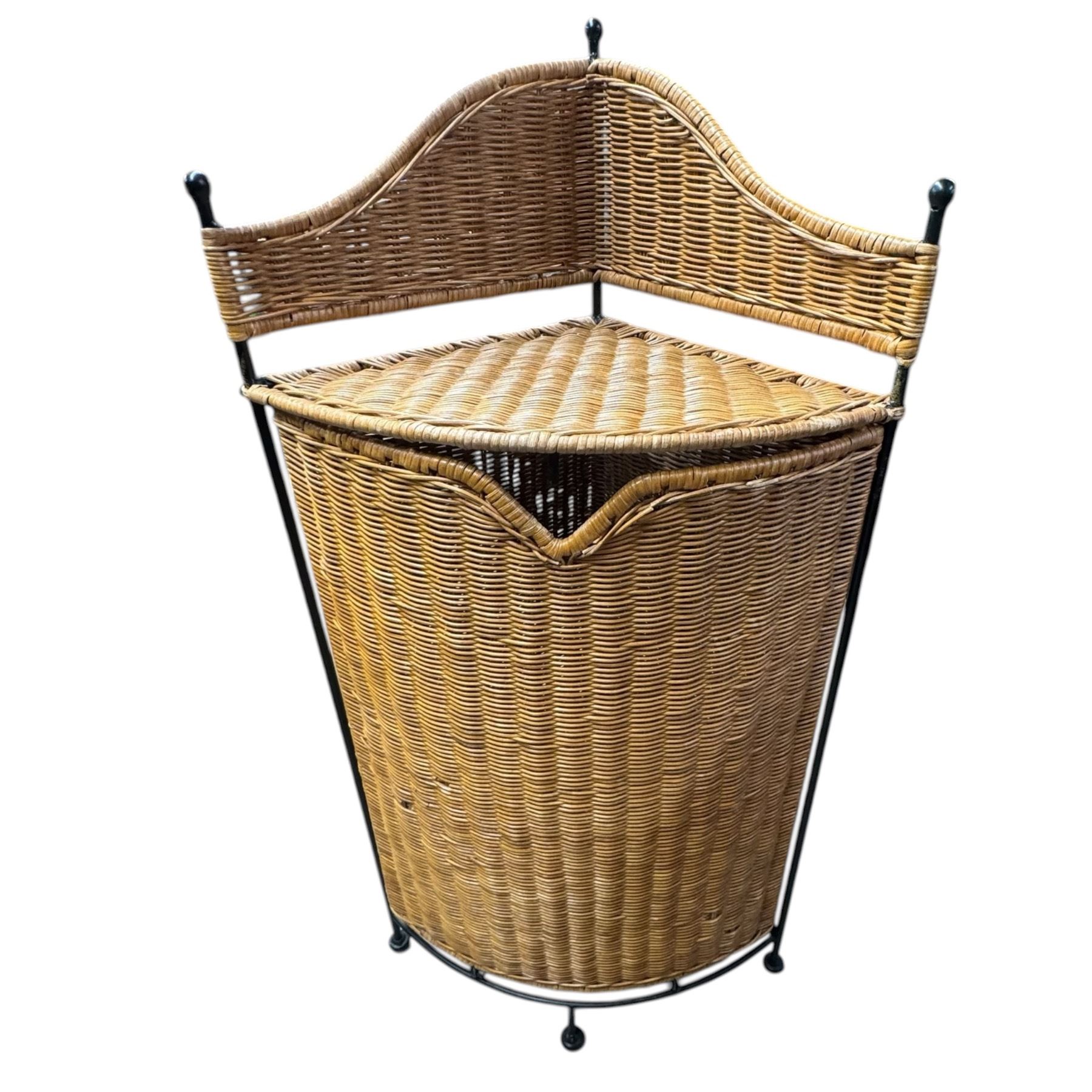 Vintage Step Stool and Modern Corner Wicker Hamper