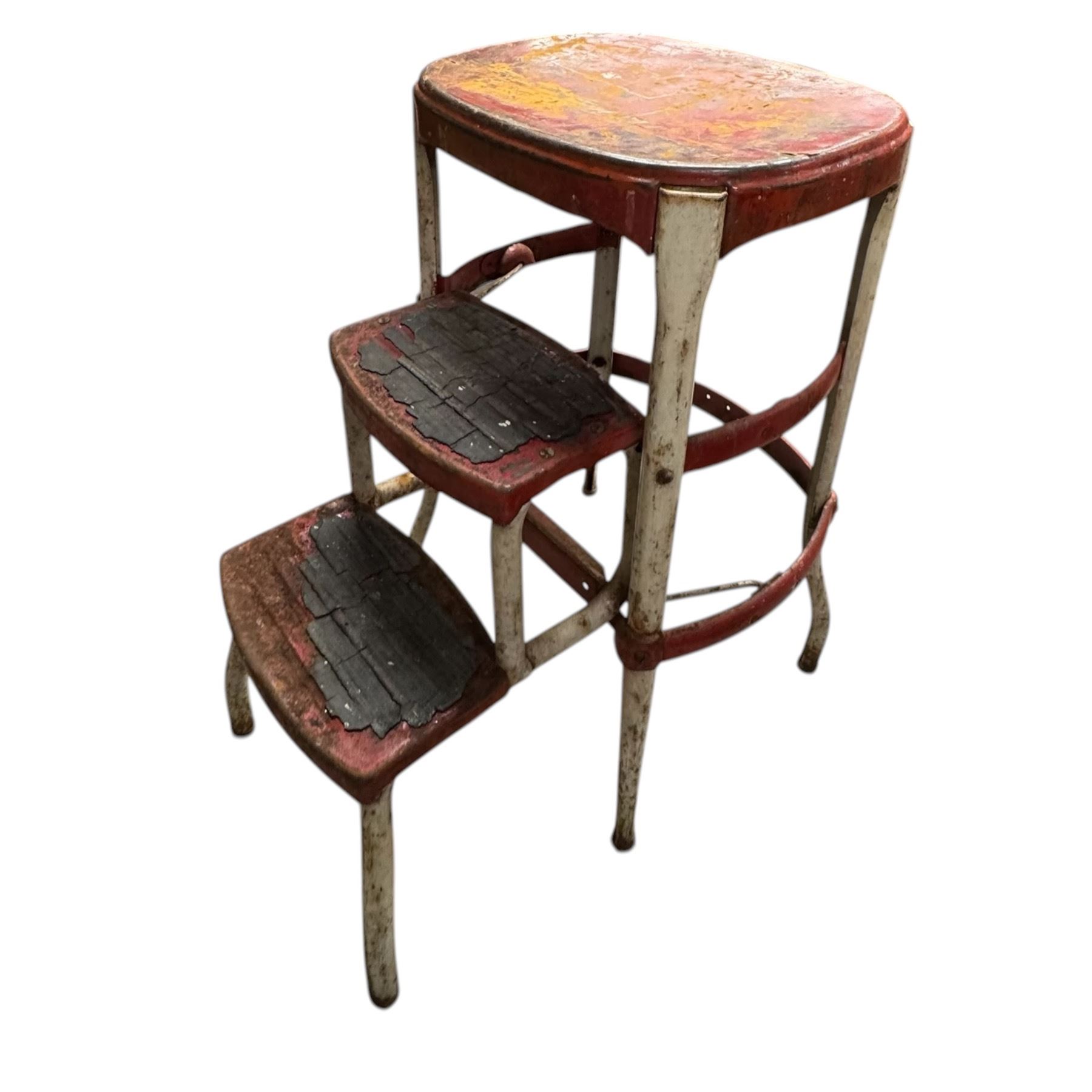 Lot 1139 Vintage Step Stool and Modern Corner Wicker Hamper