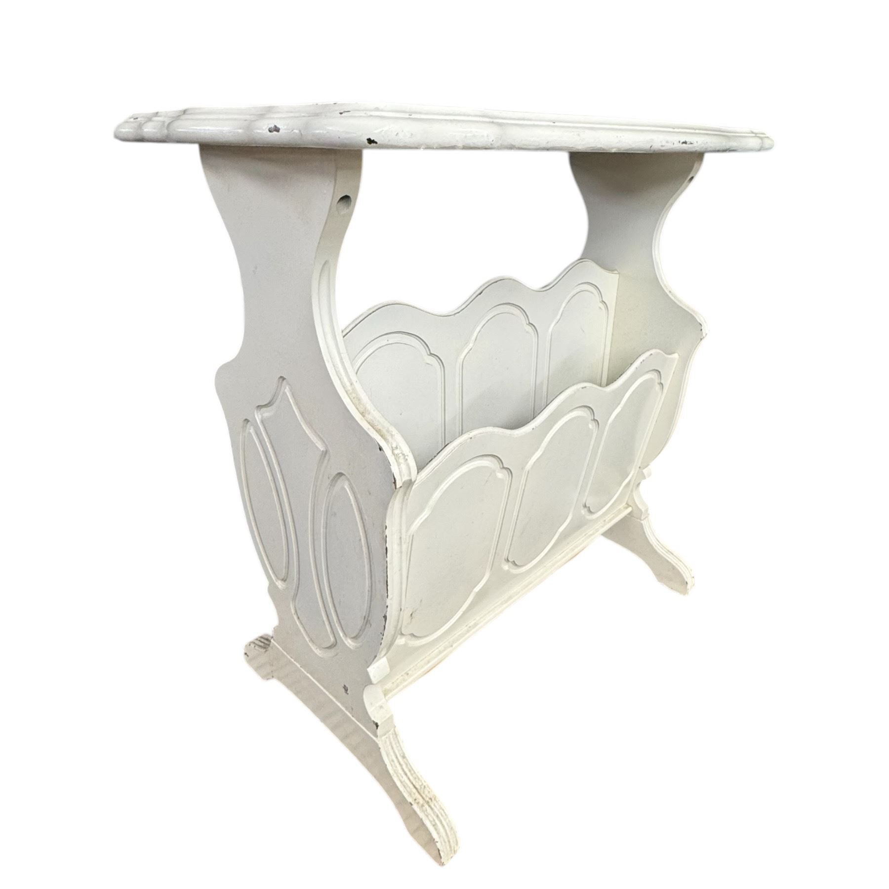 Bamboo Folding Table 30x20.5x28.5, Demilune Table (Needs Repair) and White Magazine Table