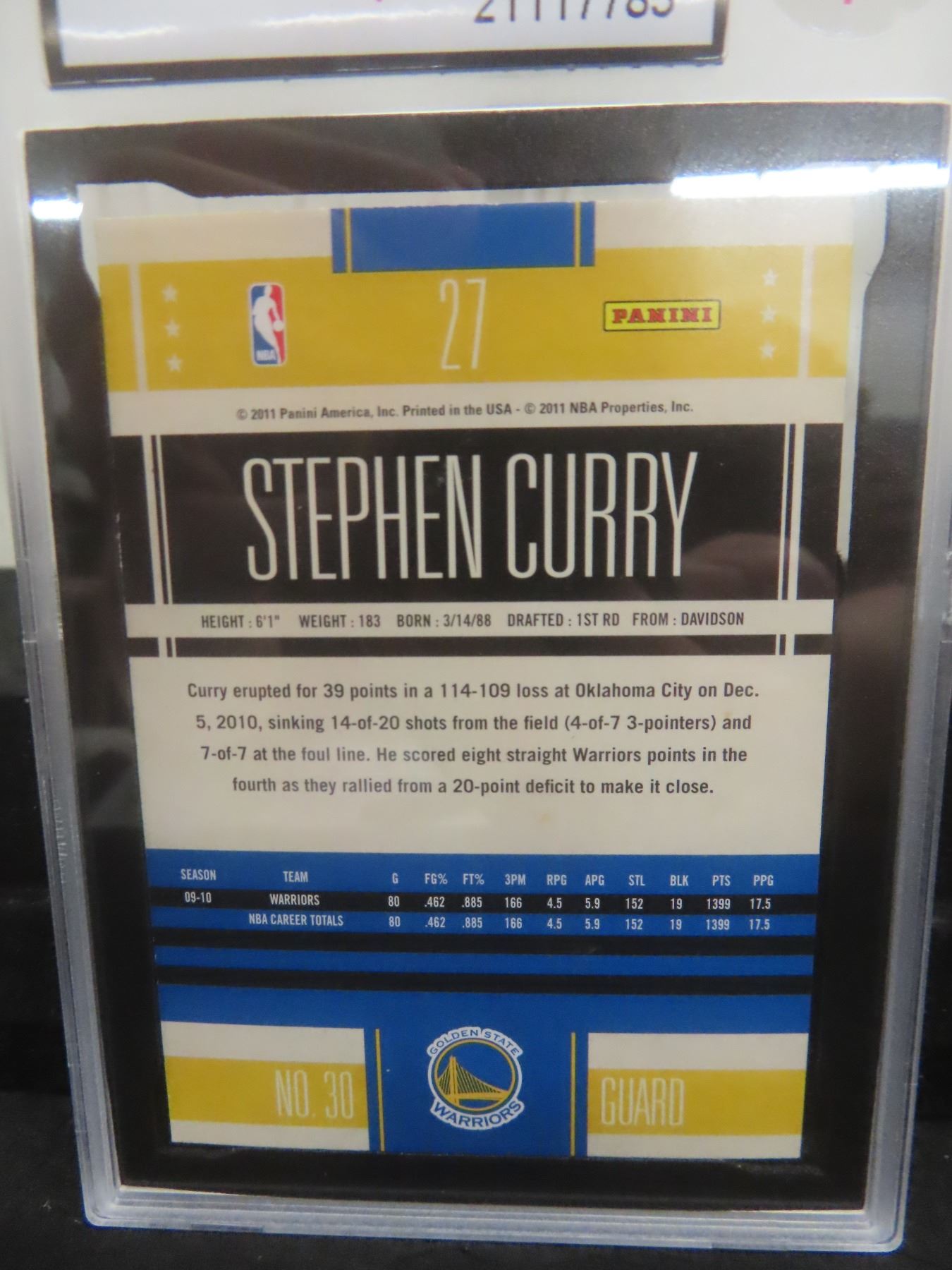 Graded Stephen Curry Golden State Warriors Basketball Card
