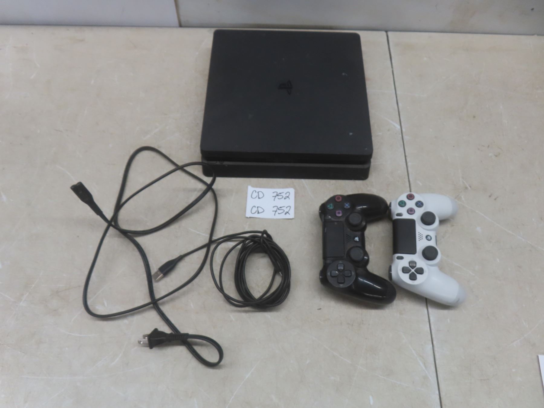 Lot 752 PS4 Slim with 2 Controllers – Powers On