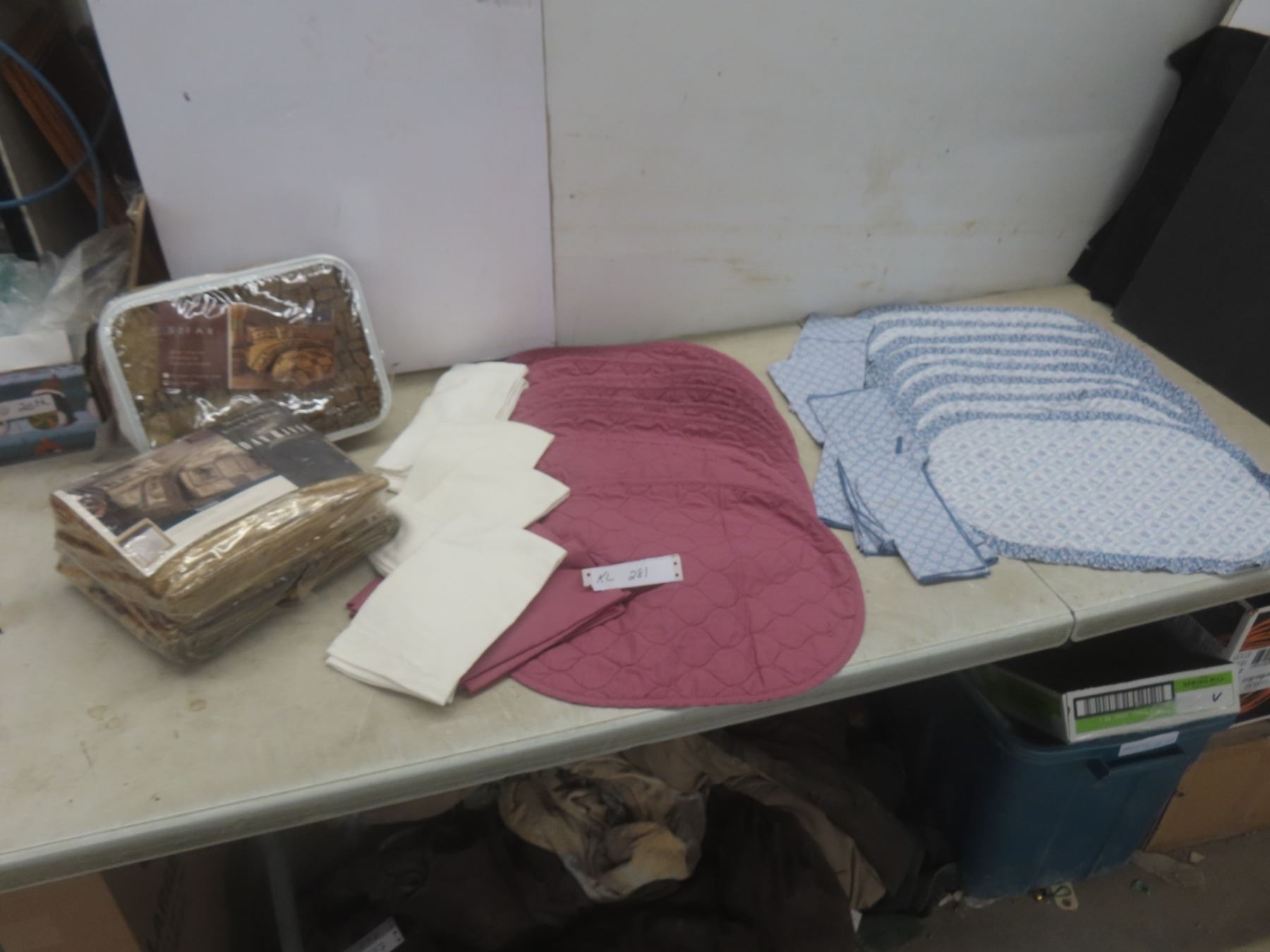 Lot 281 New King Size Bed Set: Flat Sheet, Fitted Sheet, Duvet Cover and Shams; Cloth Place Mats and Napkin