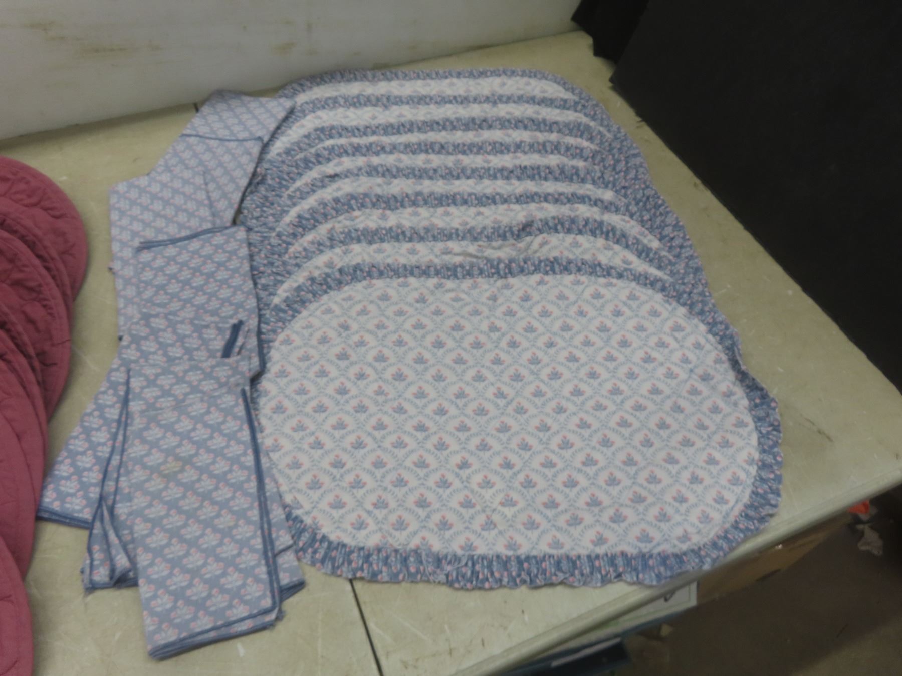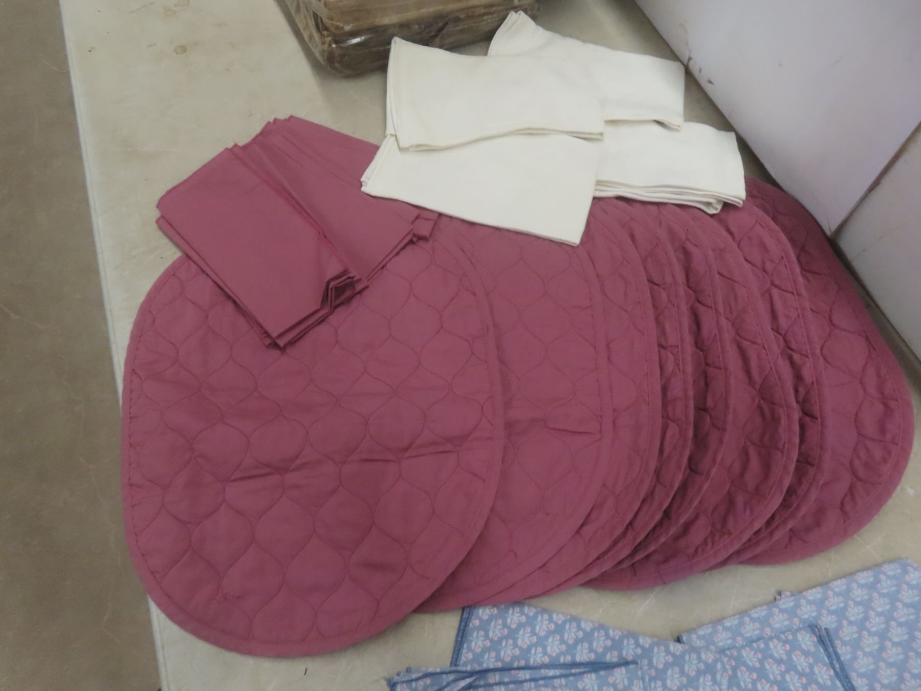 New King Size Bed Set: Flat Sheet, Fitted Sheet, Duvet Cover and Shams; Cloth Place Mats and Napkins