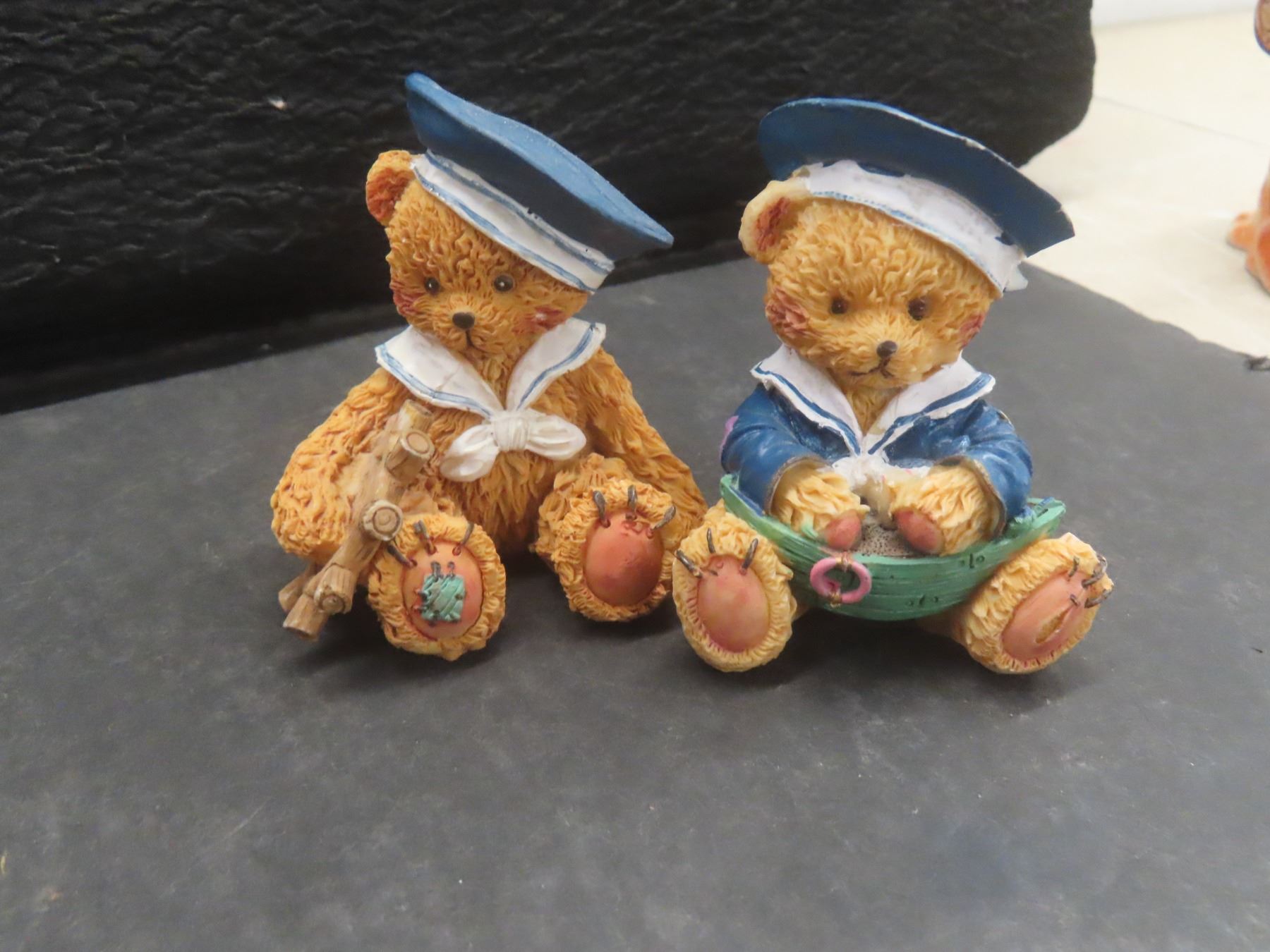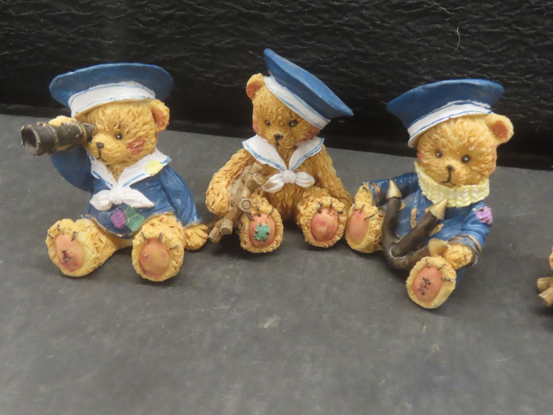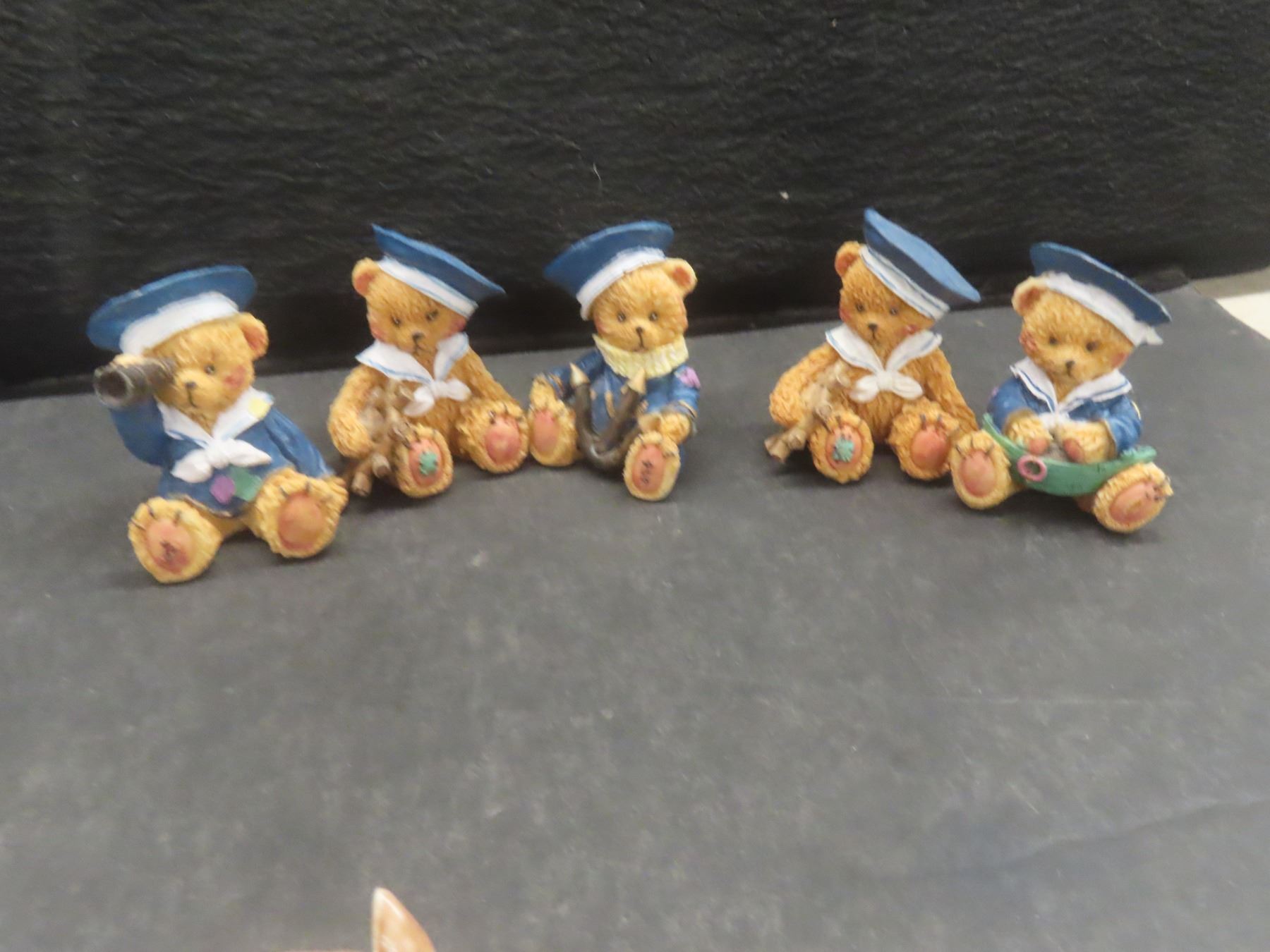 Assorted Figurines: St. Bernard Salt and Pepper Set; Copper See/Hear/Speak No Evil Monkeys; 2 Wade Tea Dog and Rabbit Figurines; 5 Teddy Bears; 2 Occupied Japan Figures